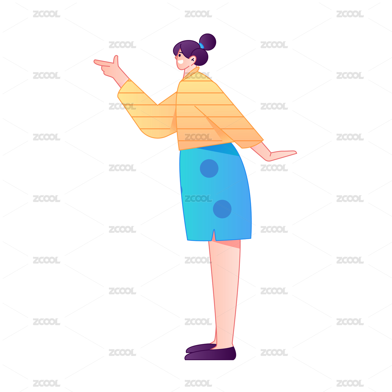 人物站姿肢体动作自信展示矢量扁平渐变插画