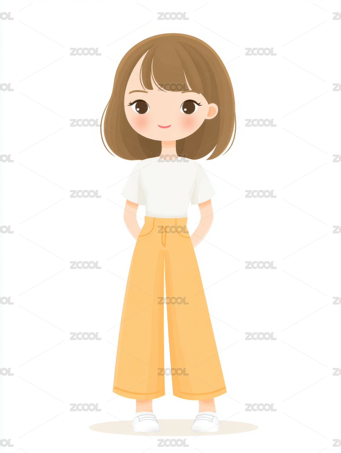正面站立女孩扁平插画