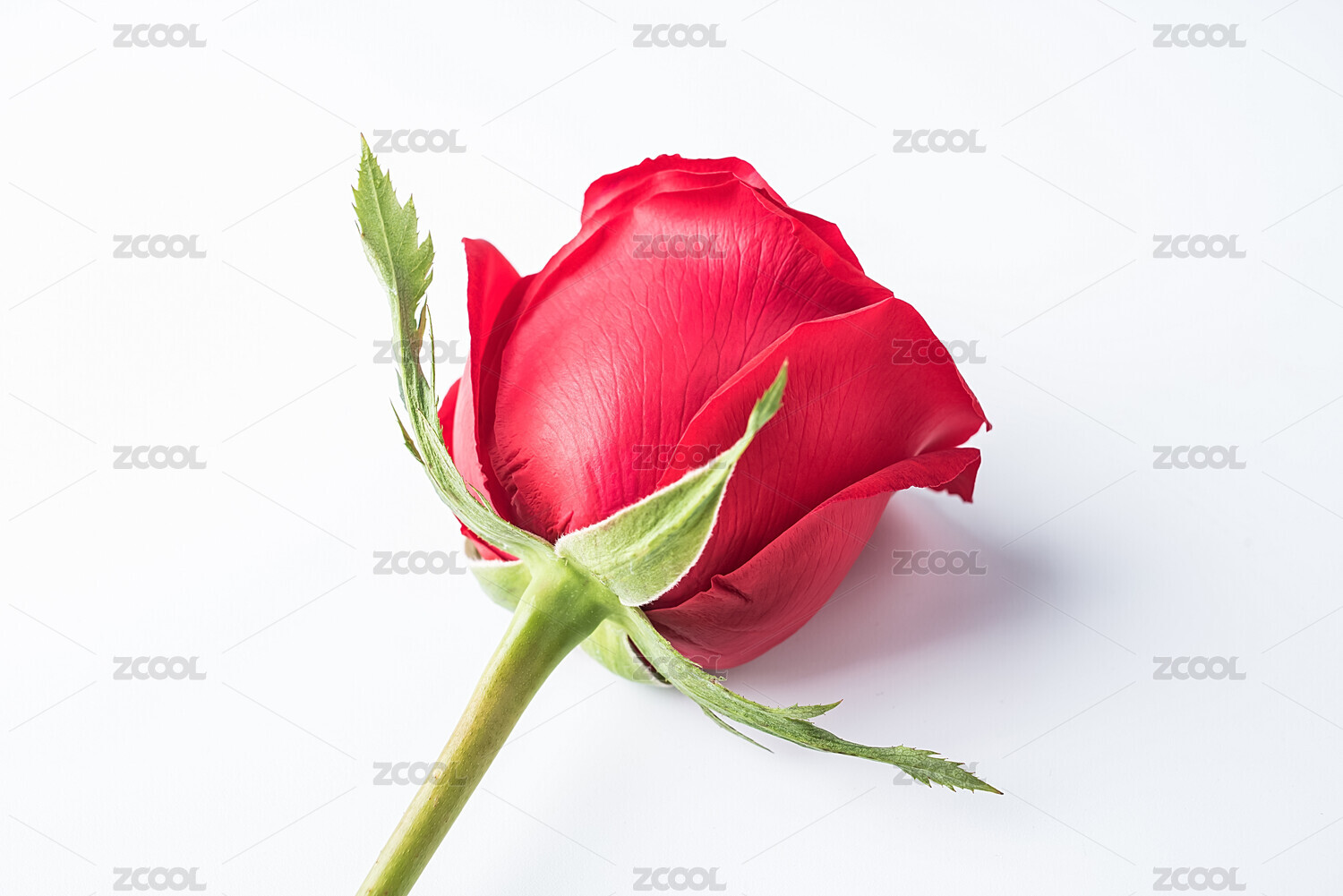 白色背景特写一朵完整红色玫瑰花