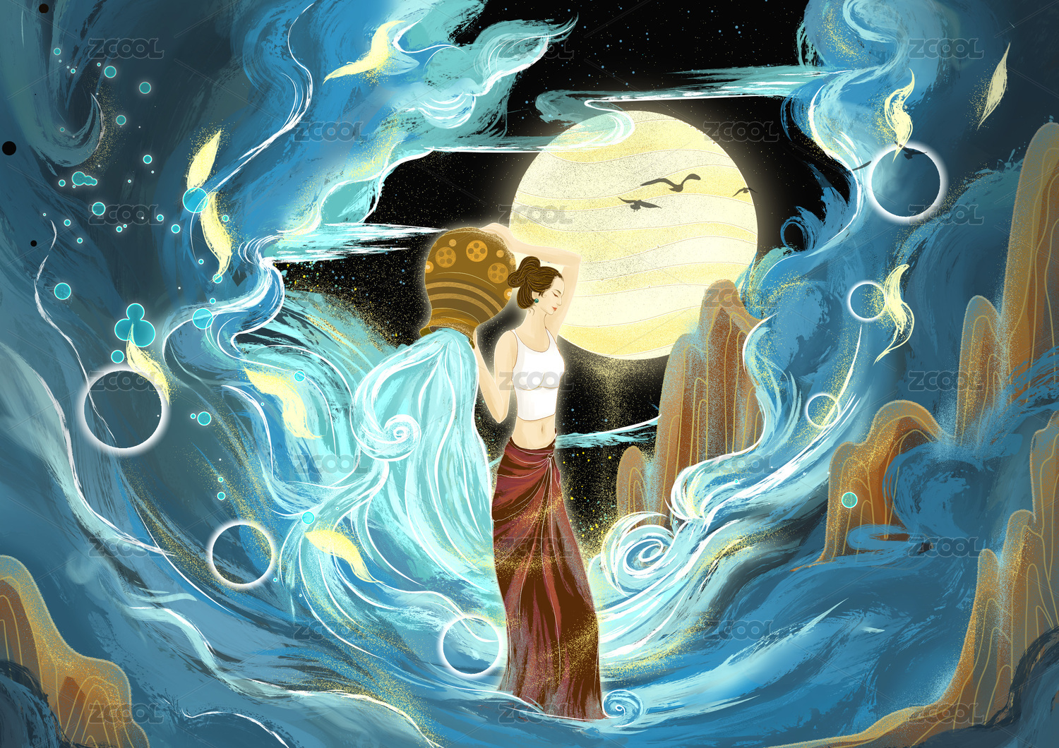 二郎神,杨戬,哮天犬,扁平风,国潮