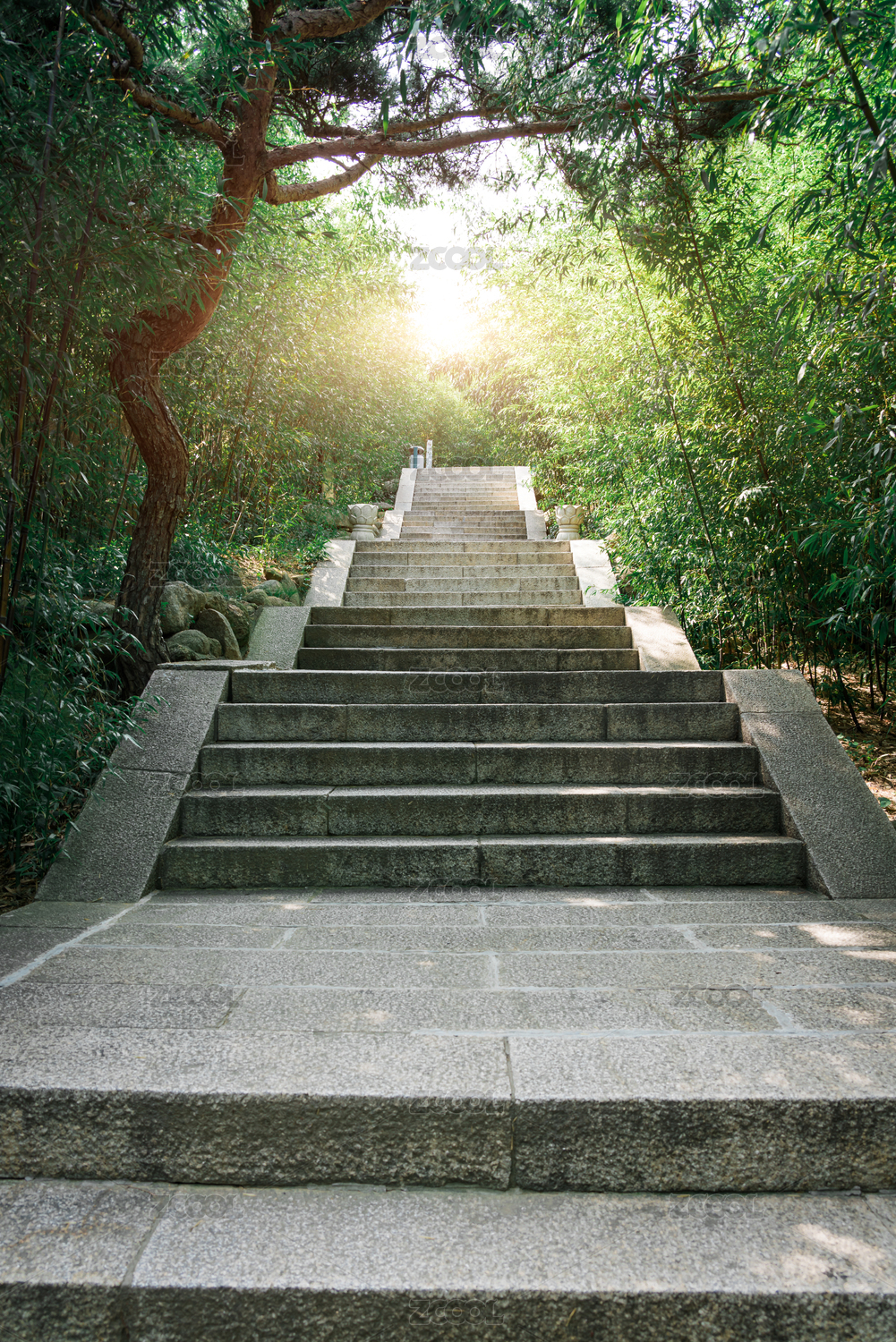 清晨中国山东青岛崂山景区上山的石阶