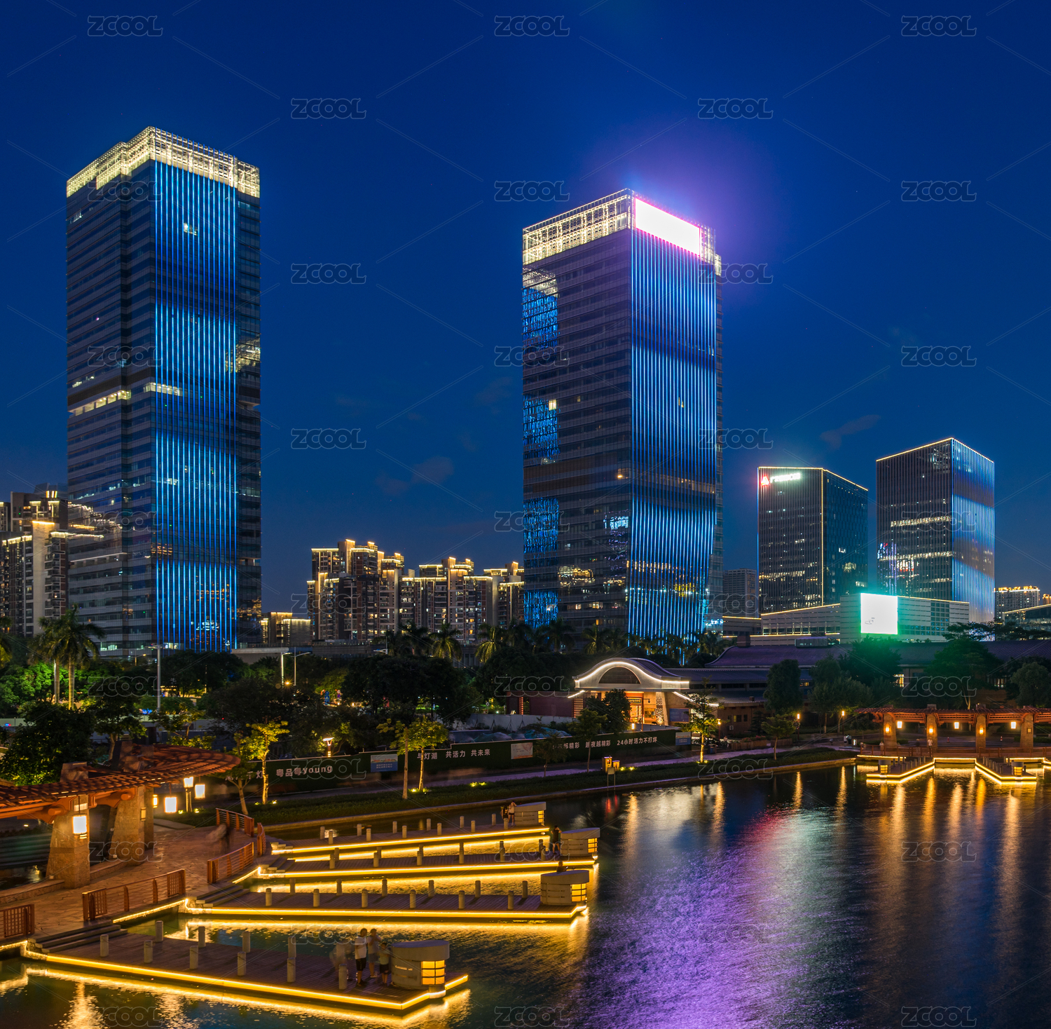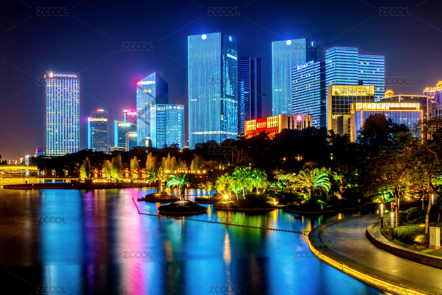 佛山千灯湖公园城市高楼建筑夜景灯光