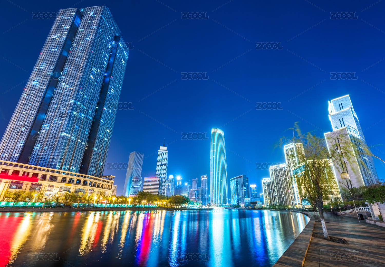 中国广东省佛山市南海区CBD建筑夜景天际线