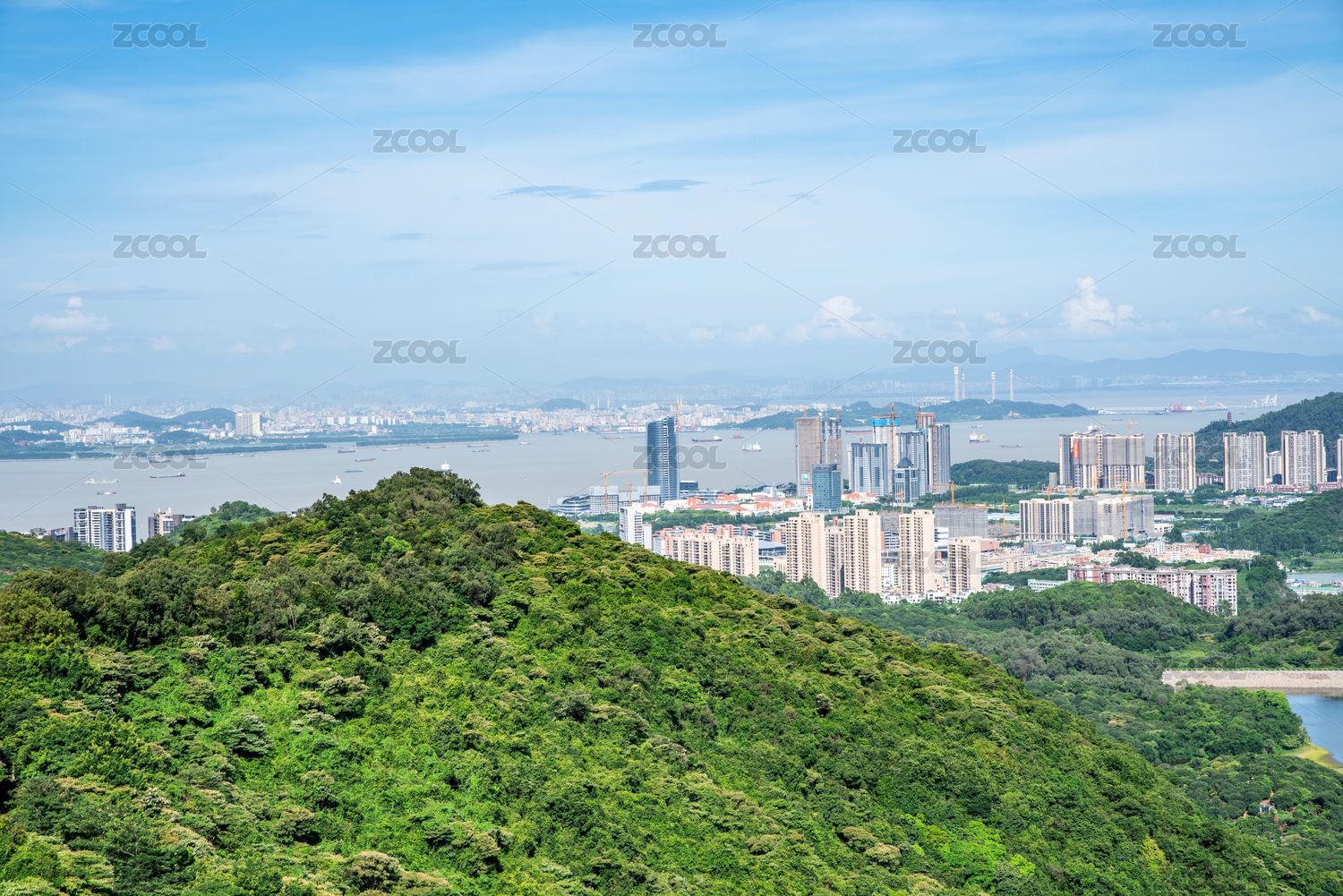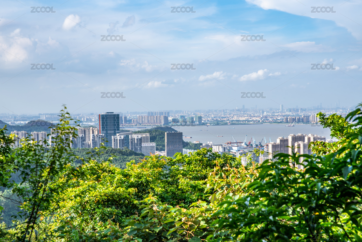 广州南沙黄山鲁森林公园眺望珠江口海湾风光