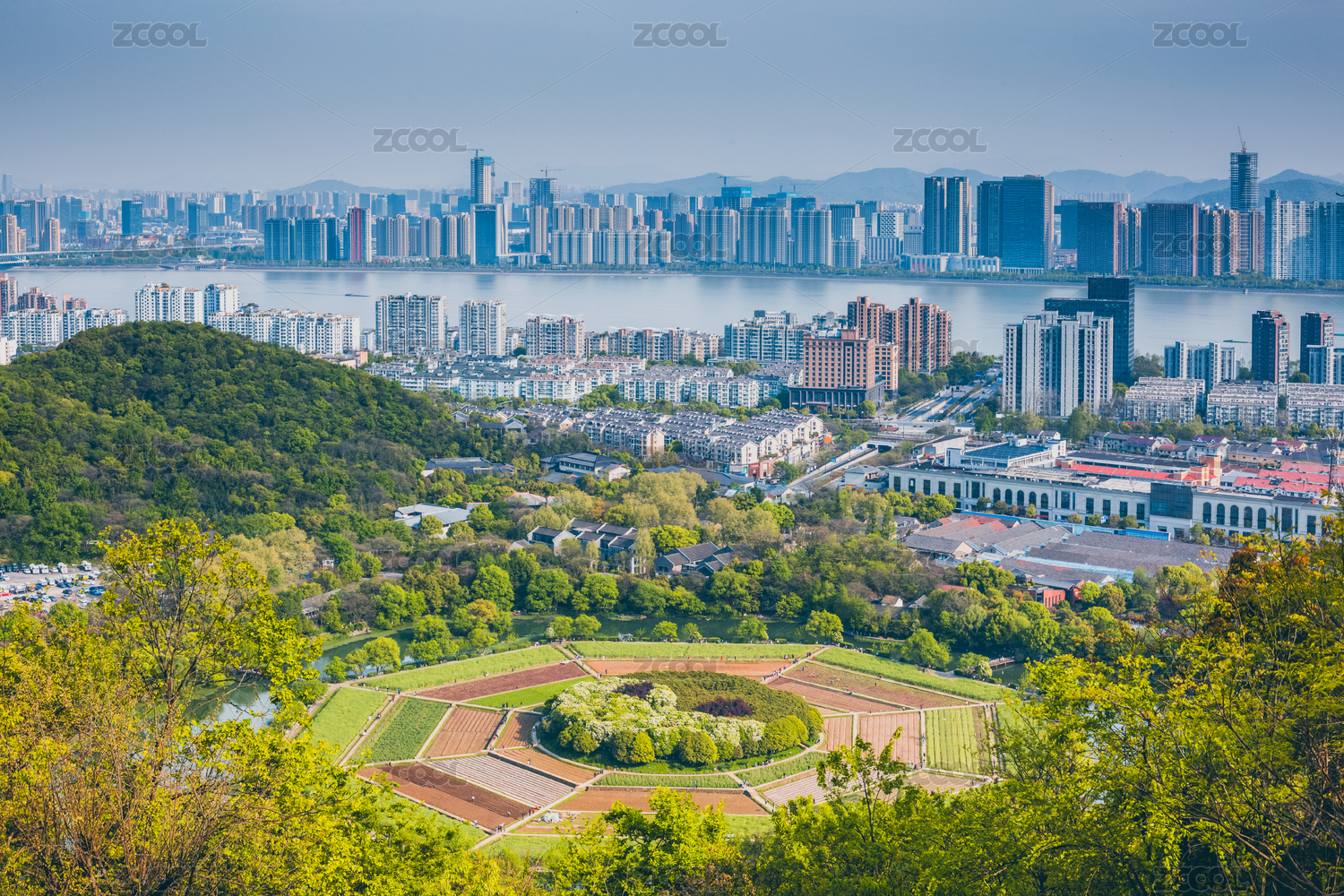 中国杭州八卦田遗址公园航拍风光