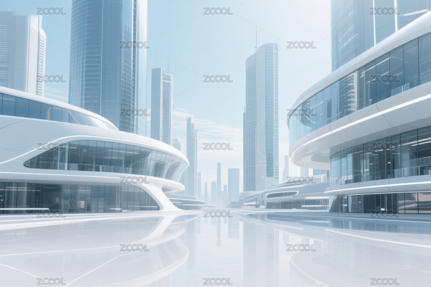 未来科技城市生态建筑景观大都市天际线背景