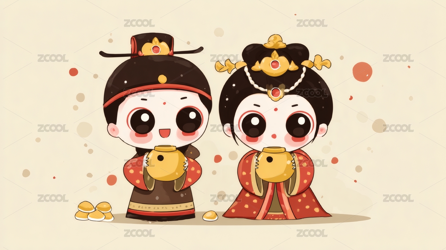 卡通情侣古风婚服喜庆图