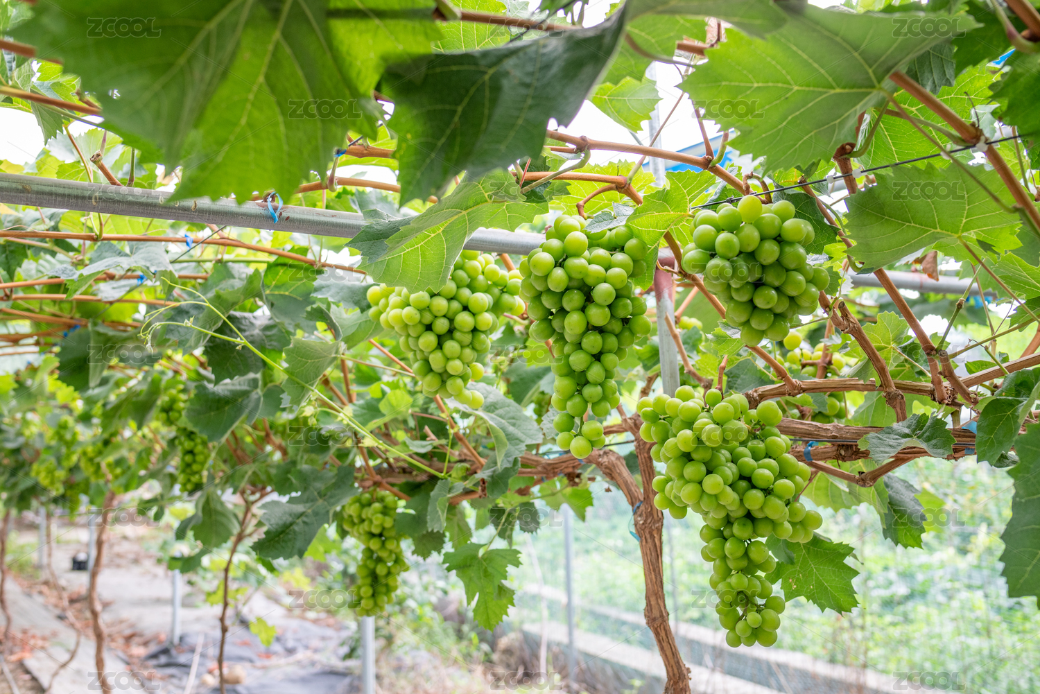 葡萄棚内成熟待摘的新鲜葡萄