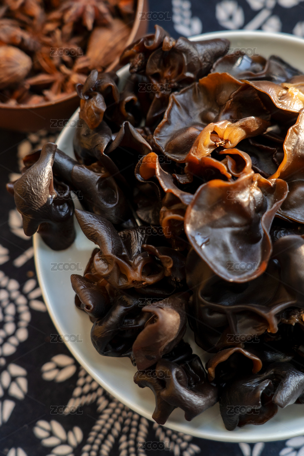 食材,食用菌,干货,新鲜,深色背景,古典,菌菇,木耳,泡开