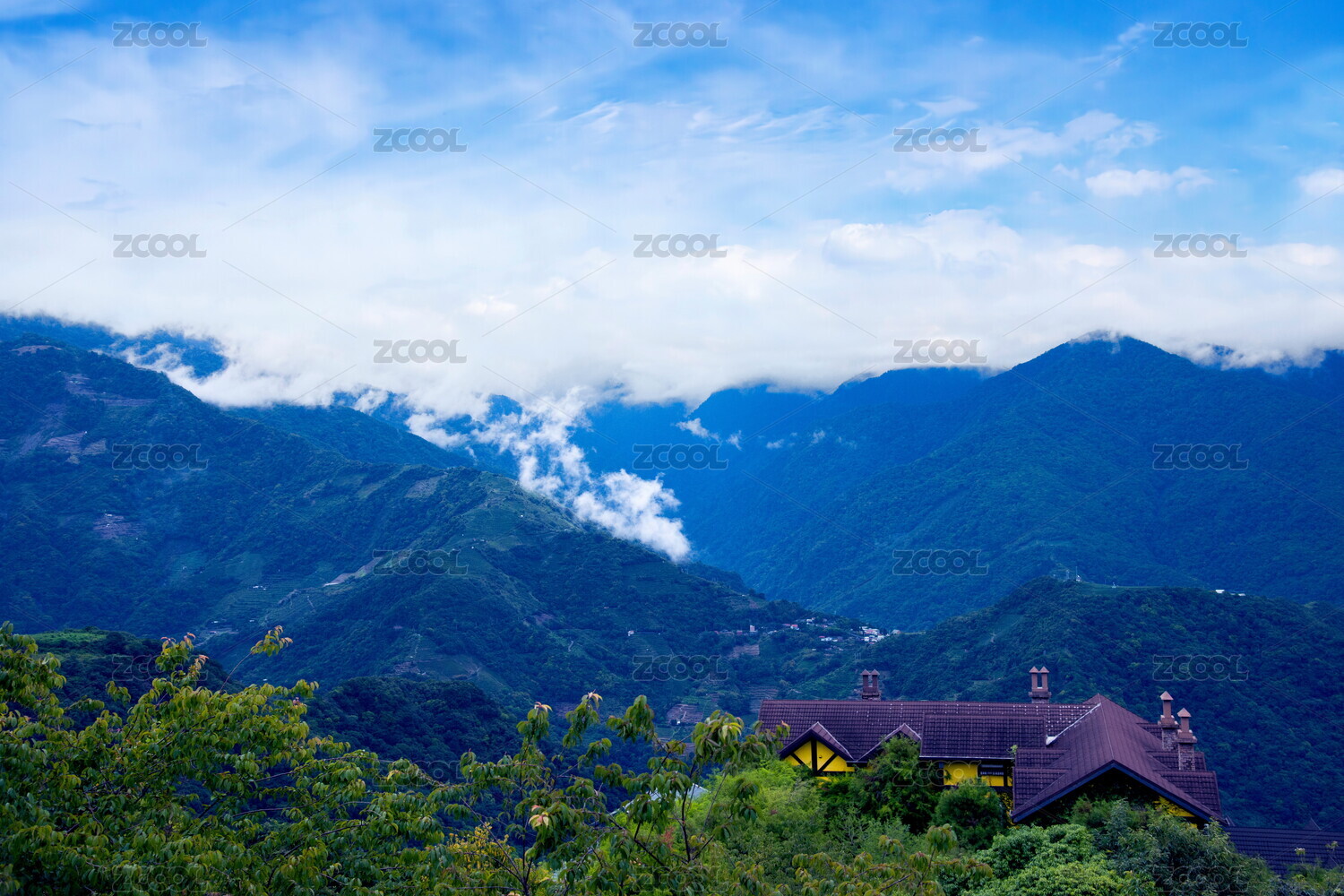 云南红河州切龙中寨村远眺哀牢山山脉的云雾