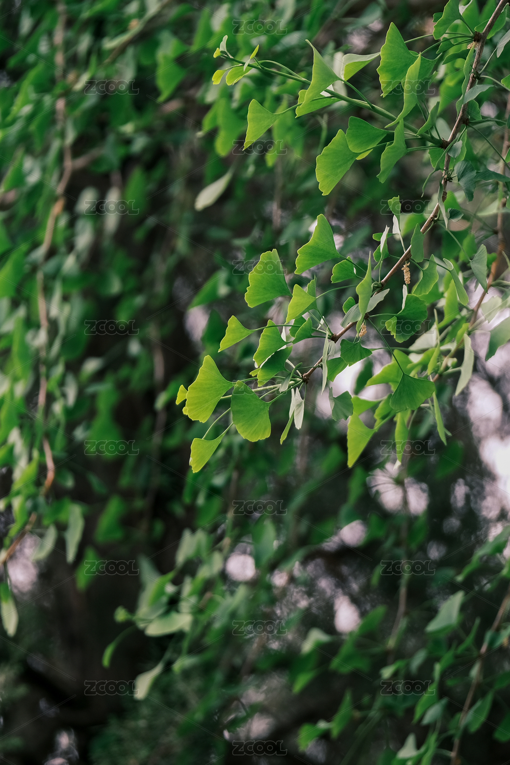 绿色的银杏树叶特写