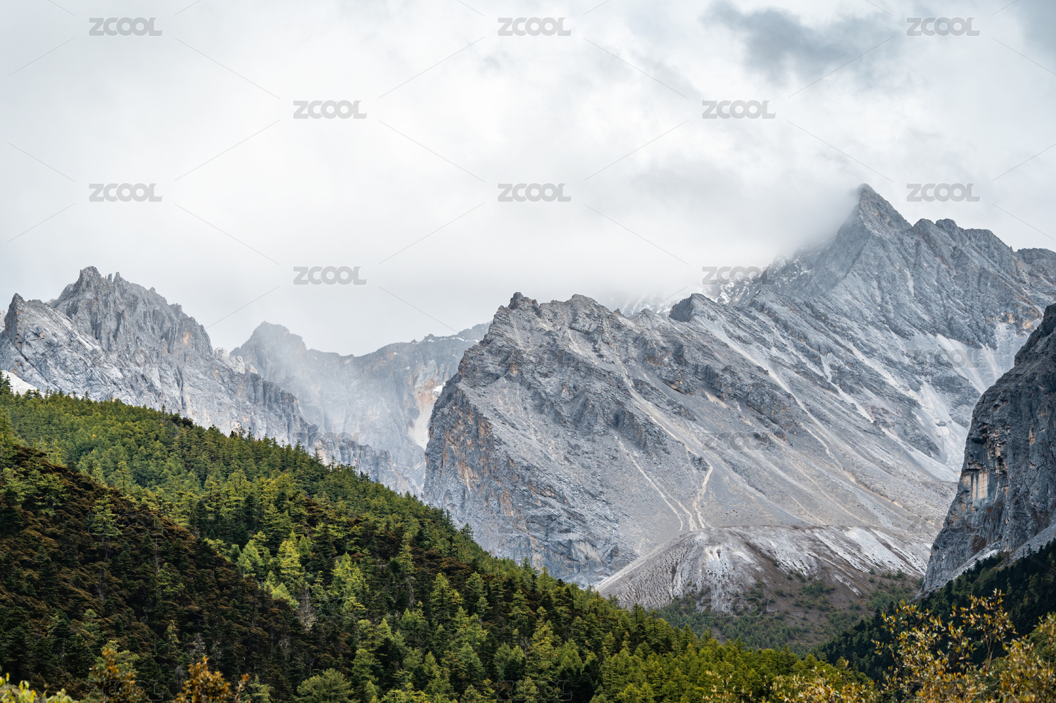 四川稻城亚丁景区的原始森林与高山湖泊风光