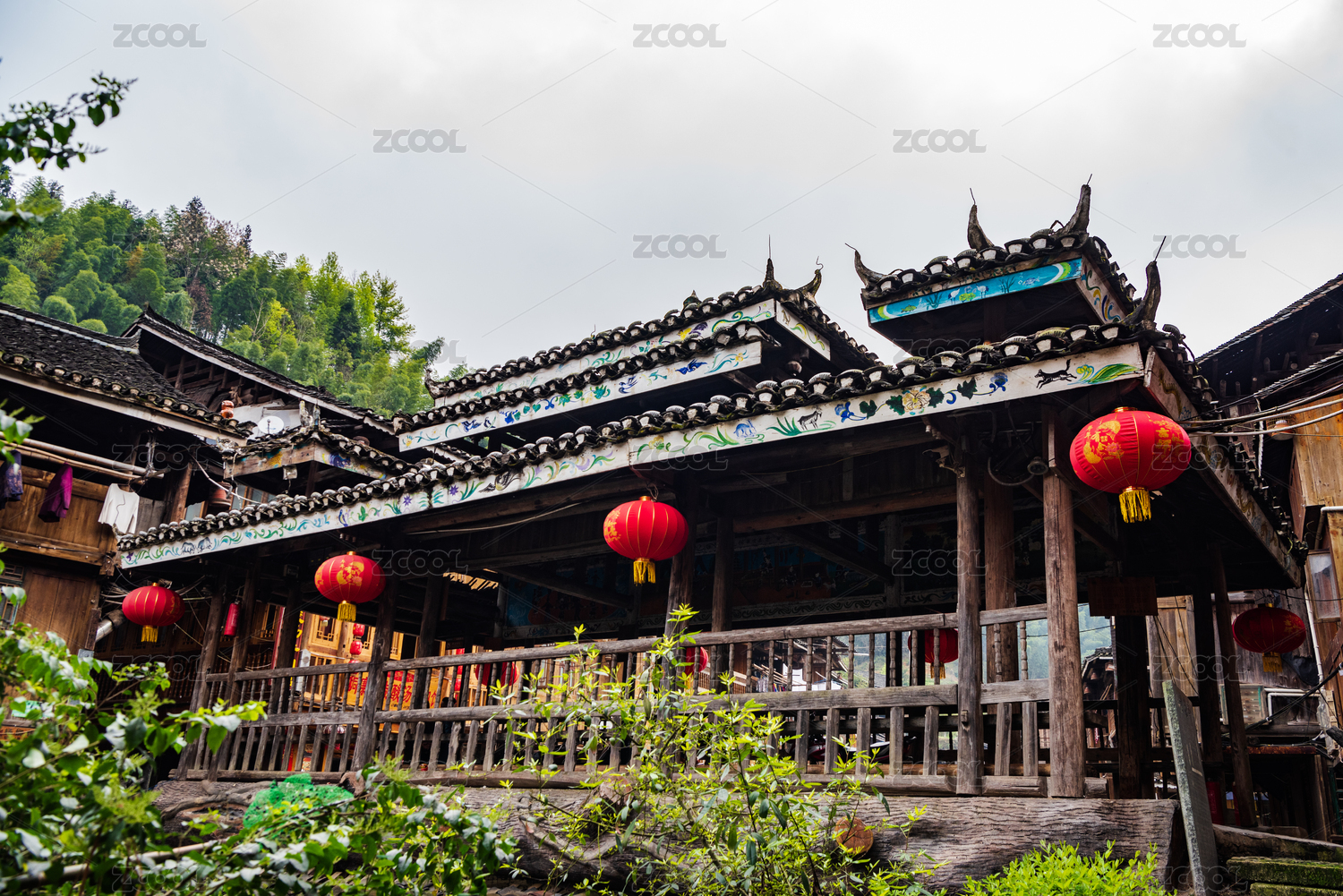 中国湖南省湘西古镇古建筑芙蓉镇摆手堂