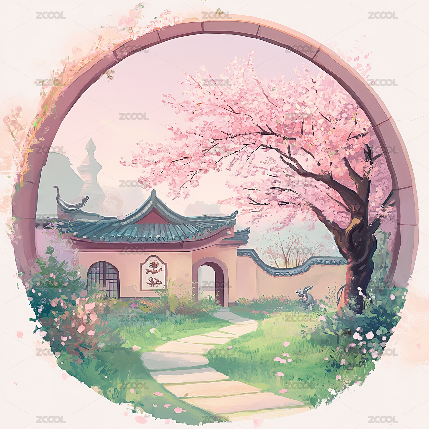 插画,中国风,中式,园林,庭院,节气,时节,壁纸,唯美,瓦