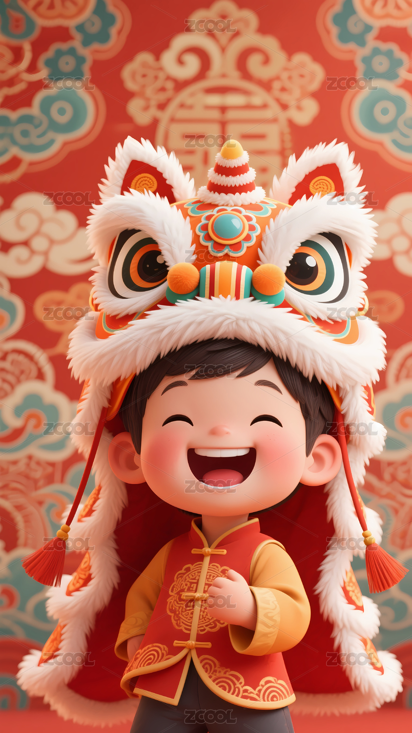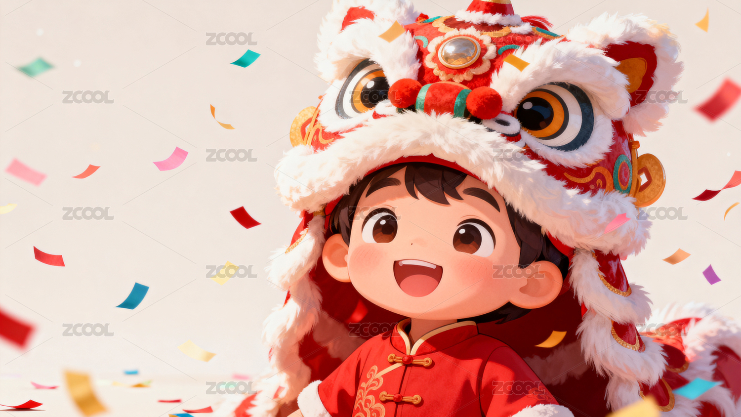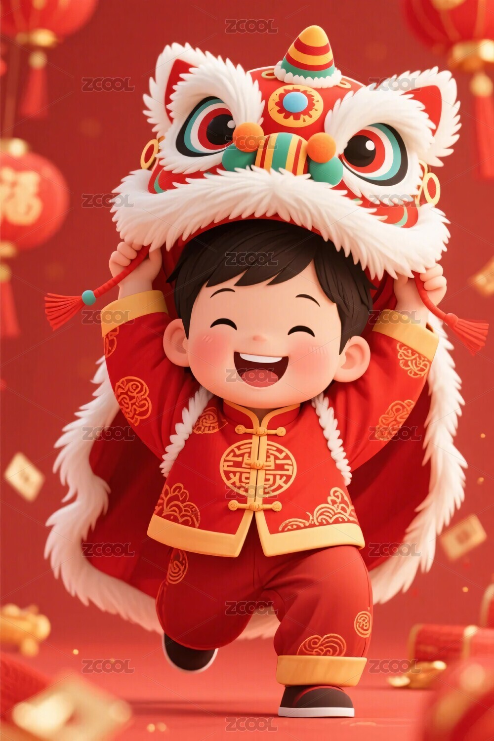 新年舞龙舞狮在街道孩子们兴奋地点燃鞭炮