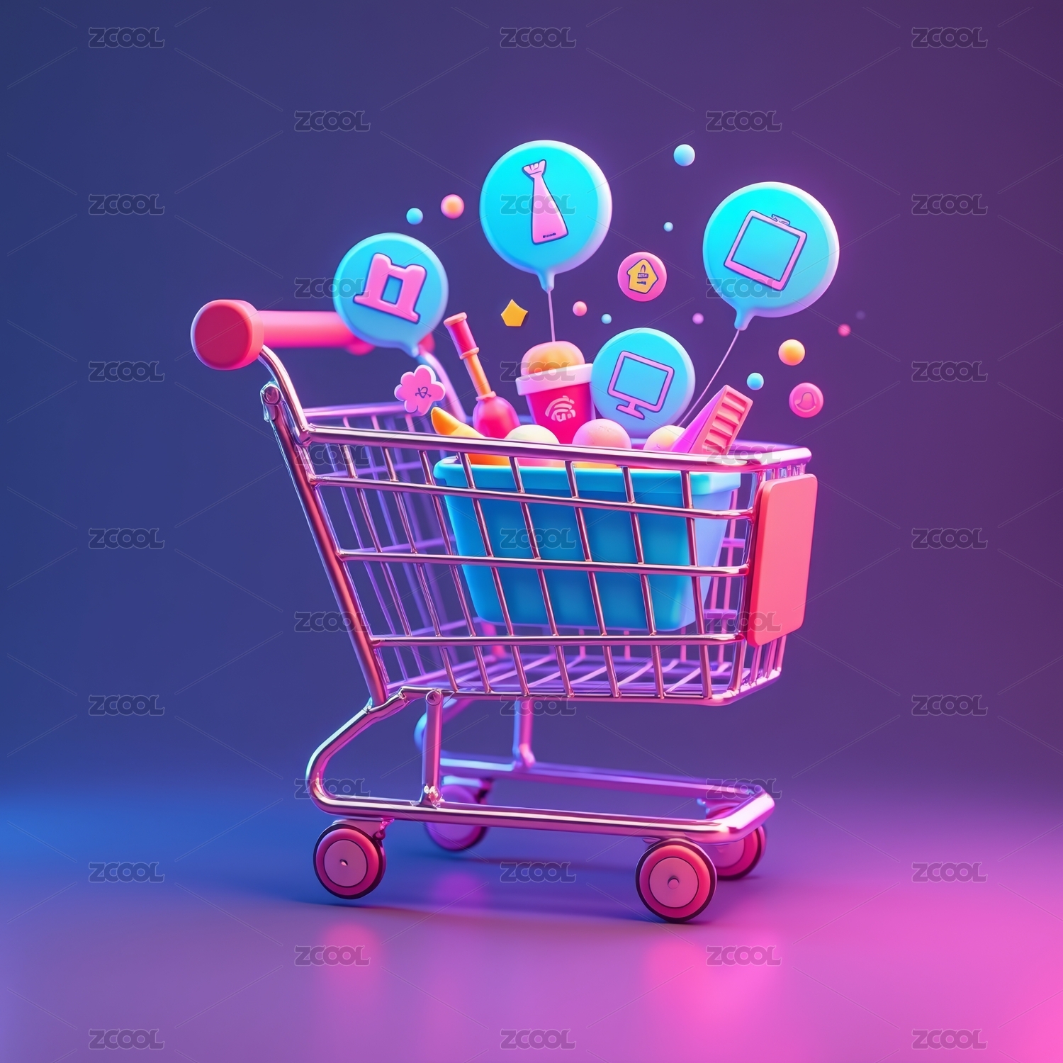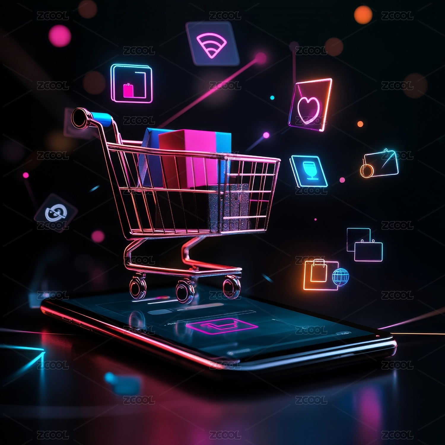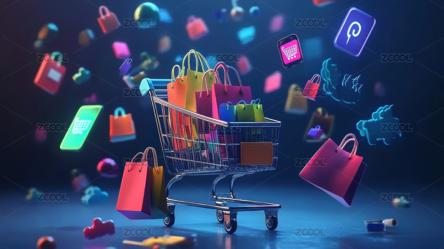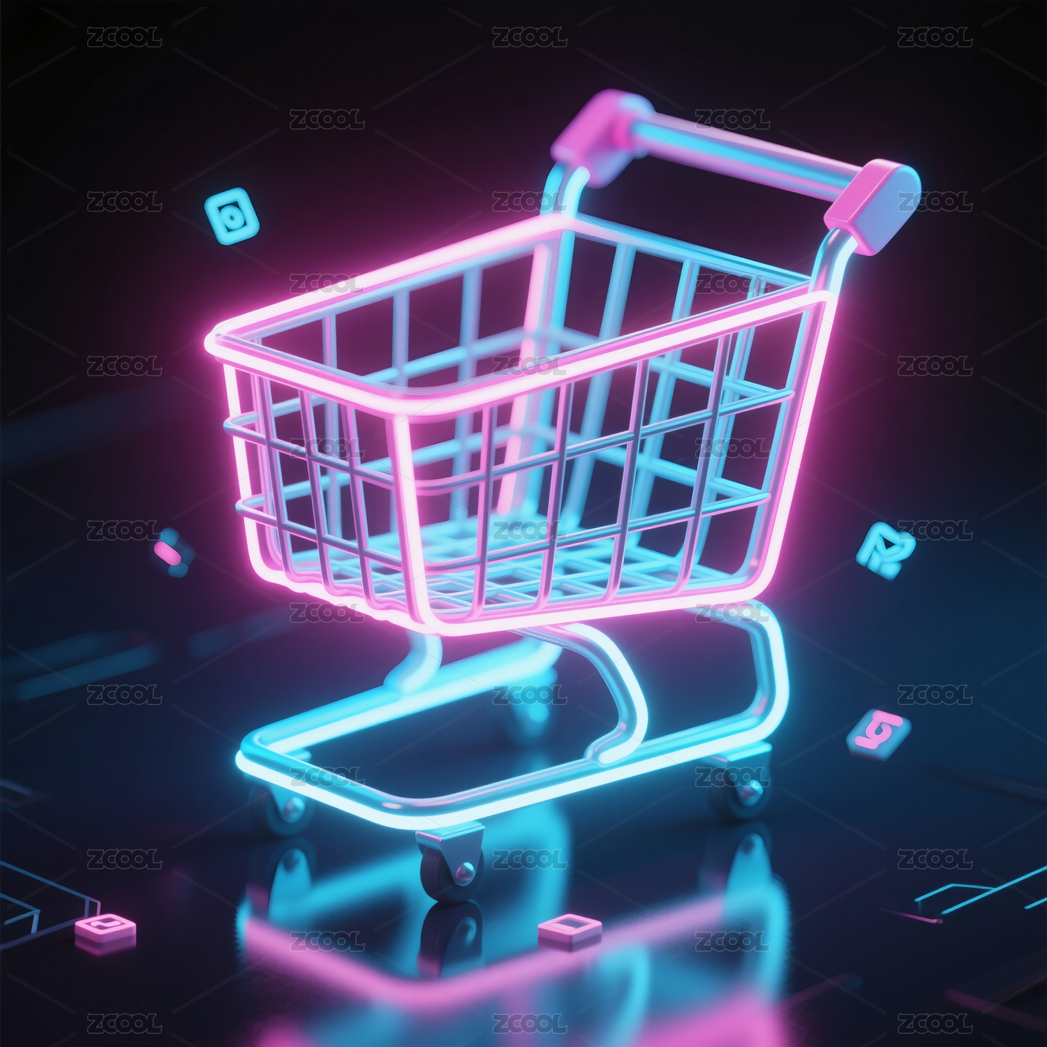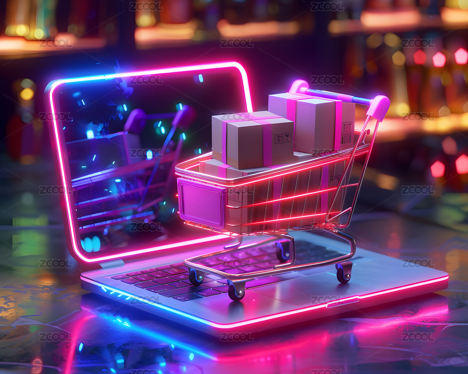 霓虹光影环绕的购物车