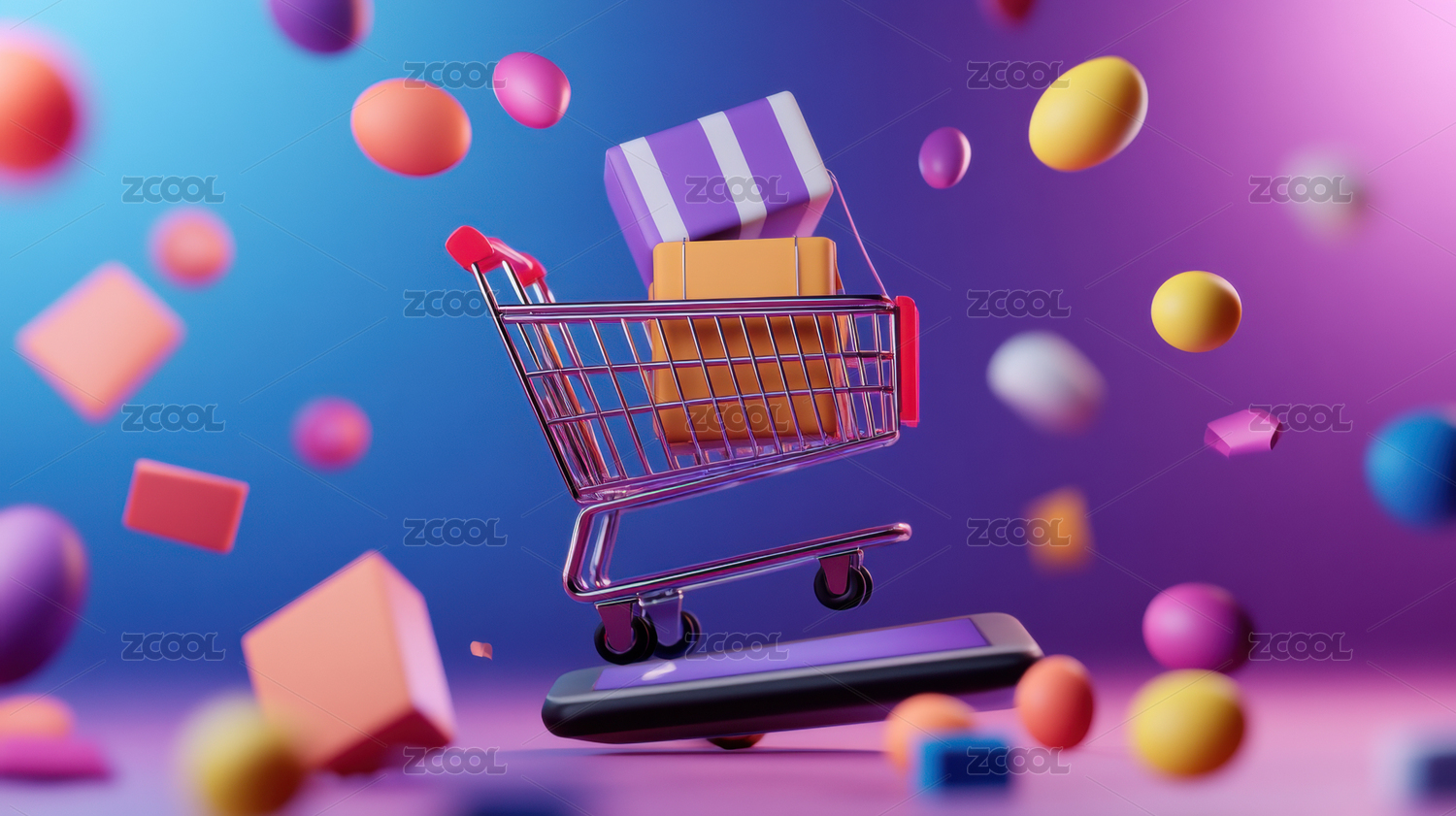 购物车彩色方块场景