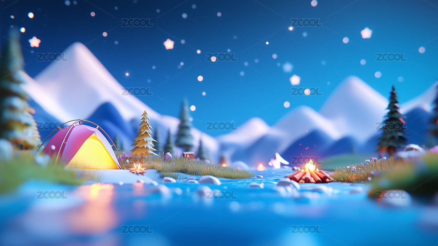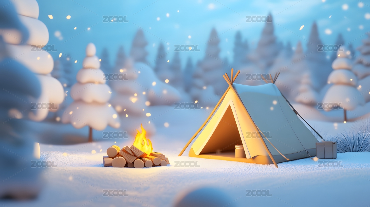 冬季雪景露营地3D渲染图