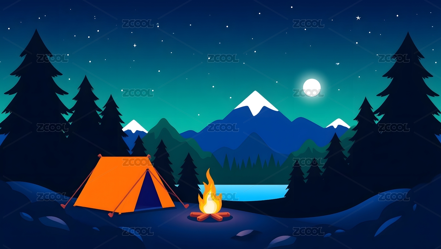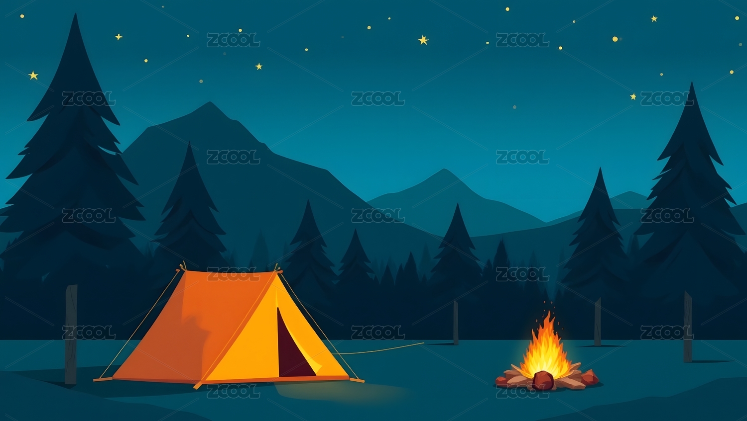 夜晚露营场景插画
