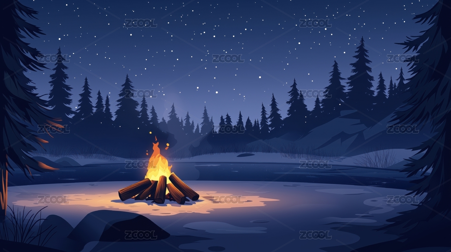 冬夜篝火插图背景