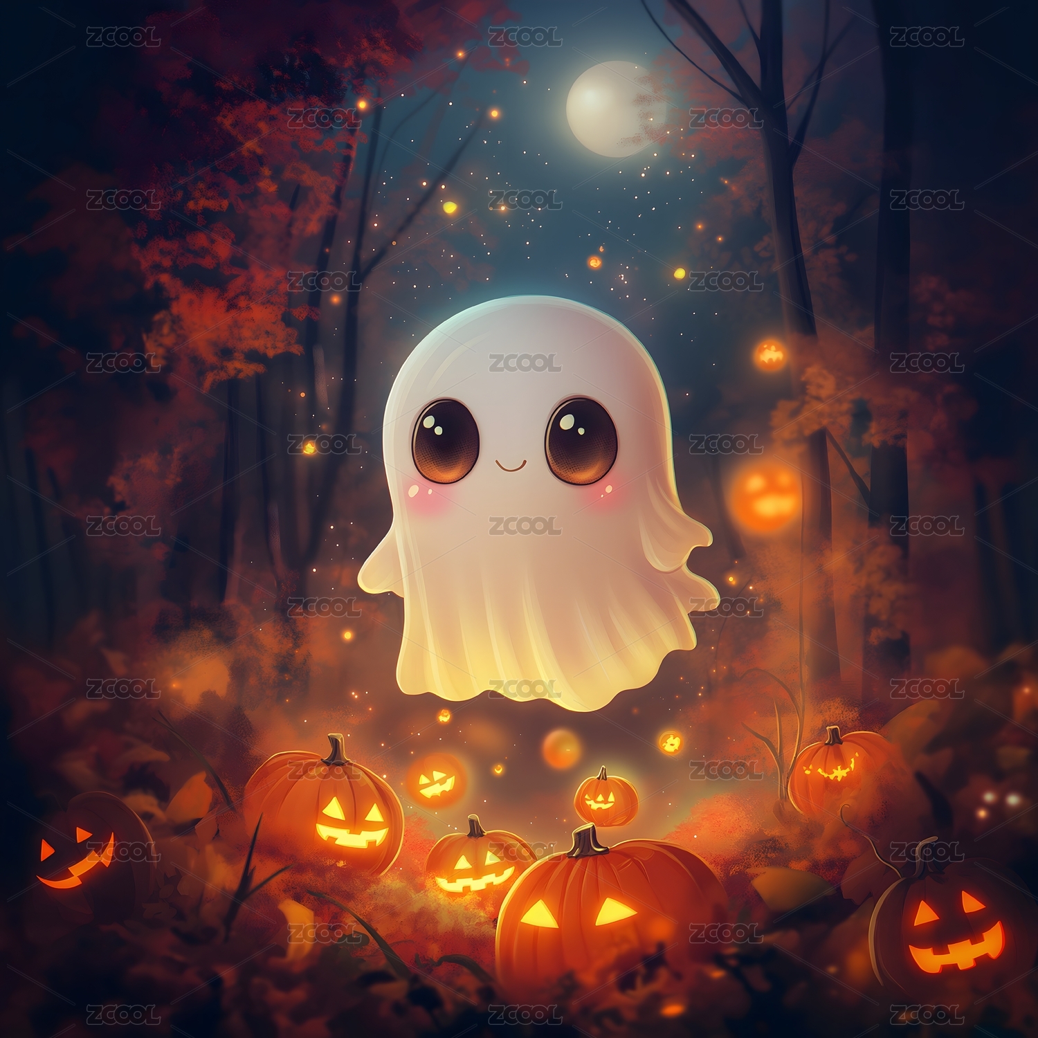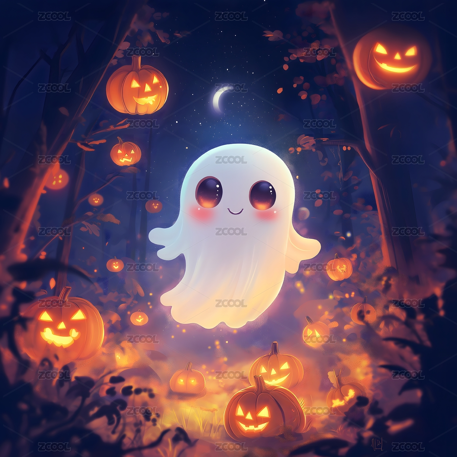 可爱萌系鬼魂角色插画