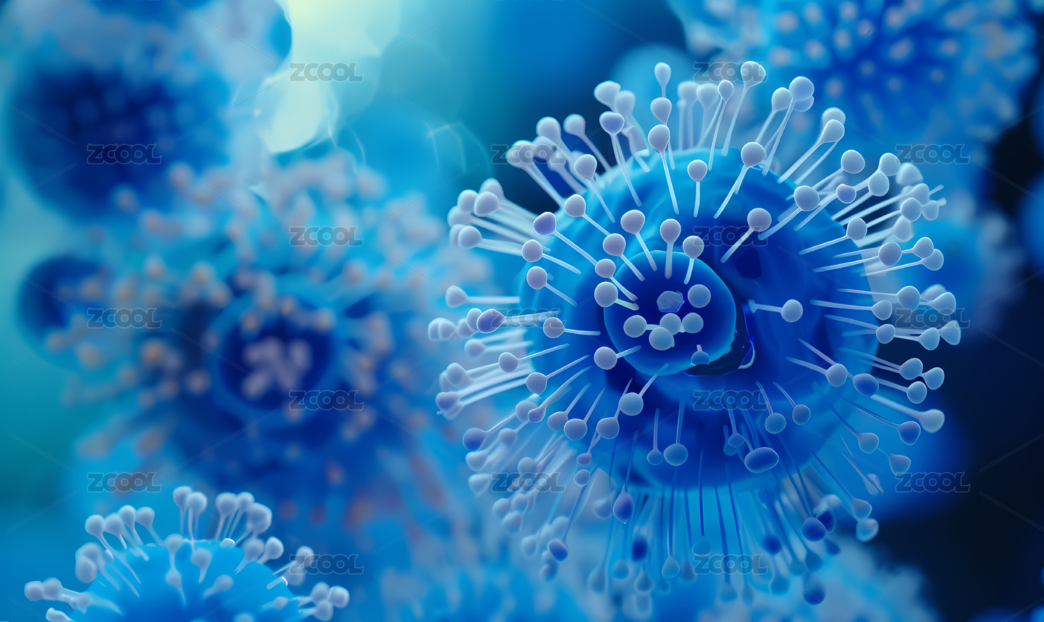 病毒微观结构特写蓝色病毒细胞高清显微镜