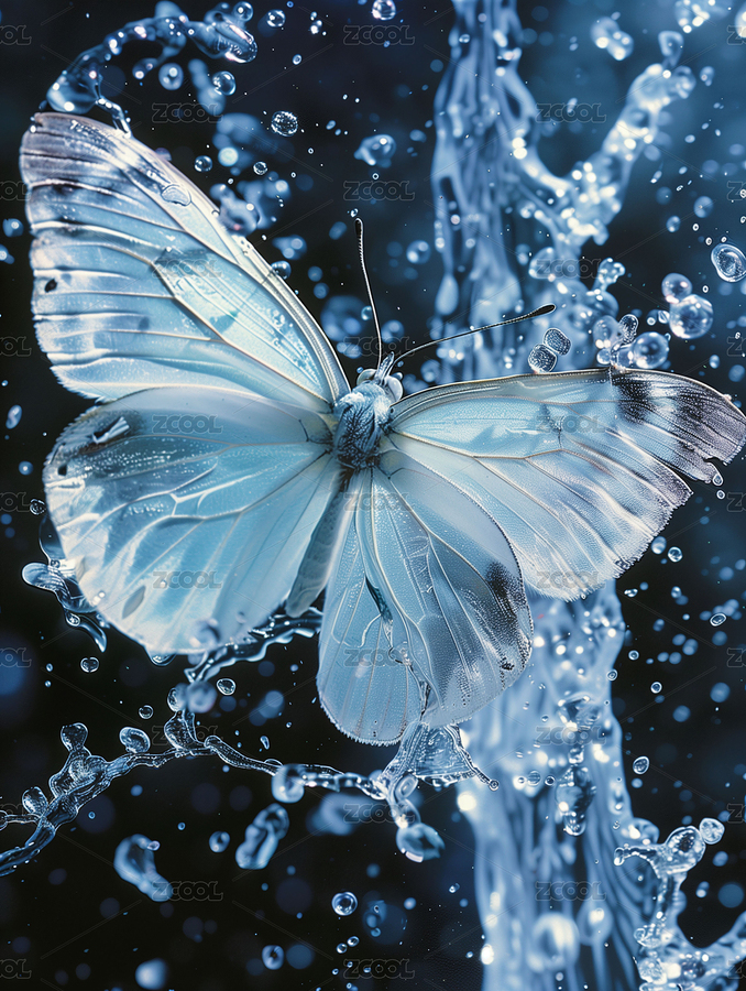 海中清浅蓝蝴蝶场景抽象手机端图形海报背景