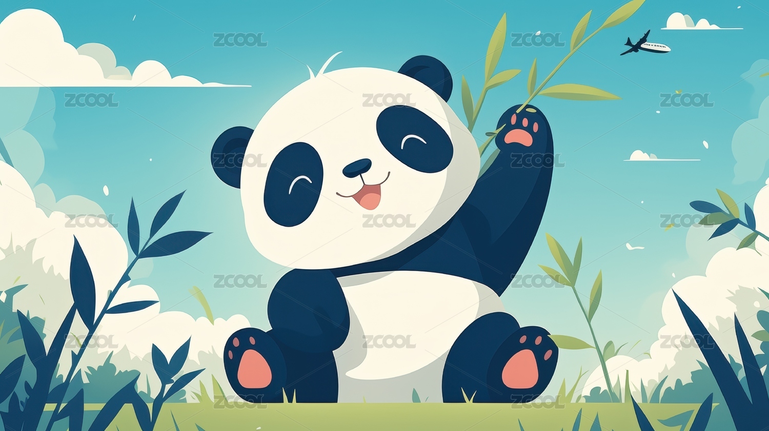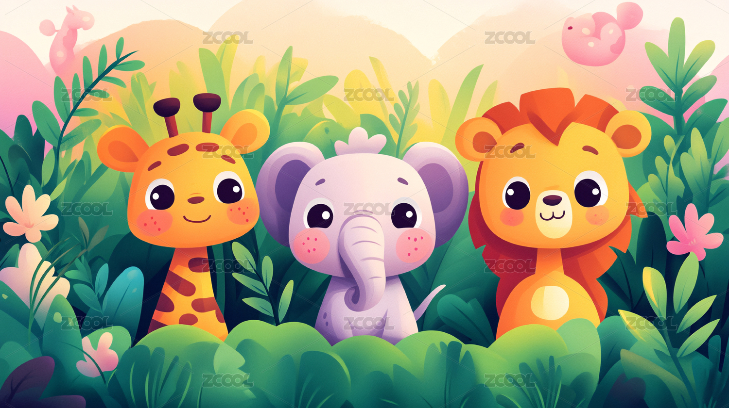 可爱大熊猫长颈鹿大象动物插画