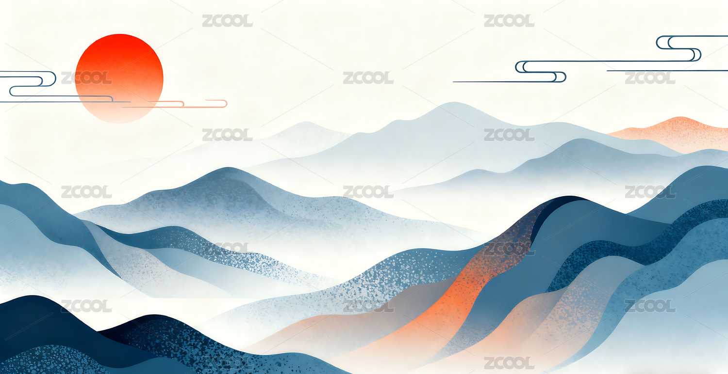 东方日出新中式意境淡雅水墨山水画背景