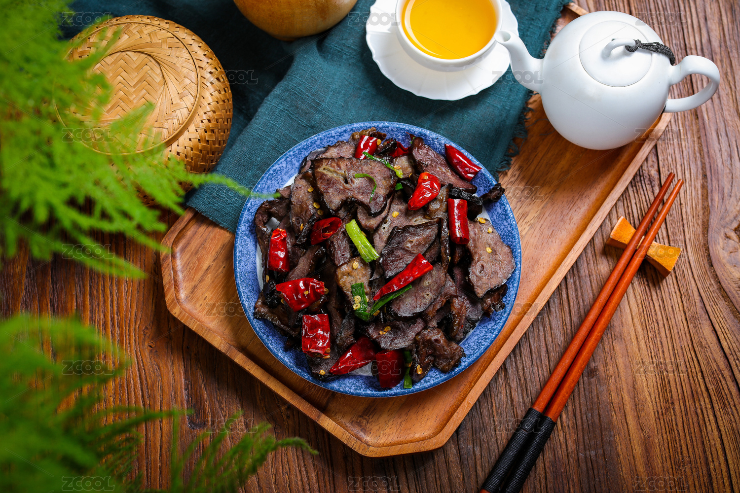 特色农家菜辣椒蒜苗炒牛肉干巴