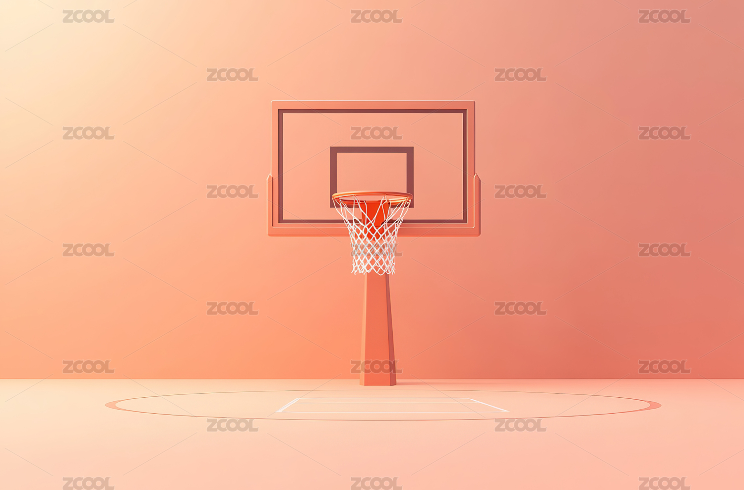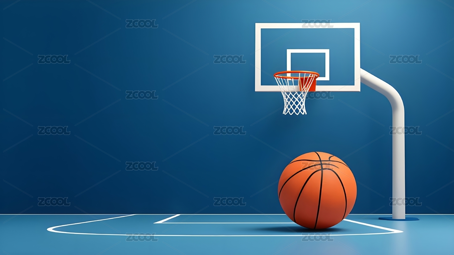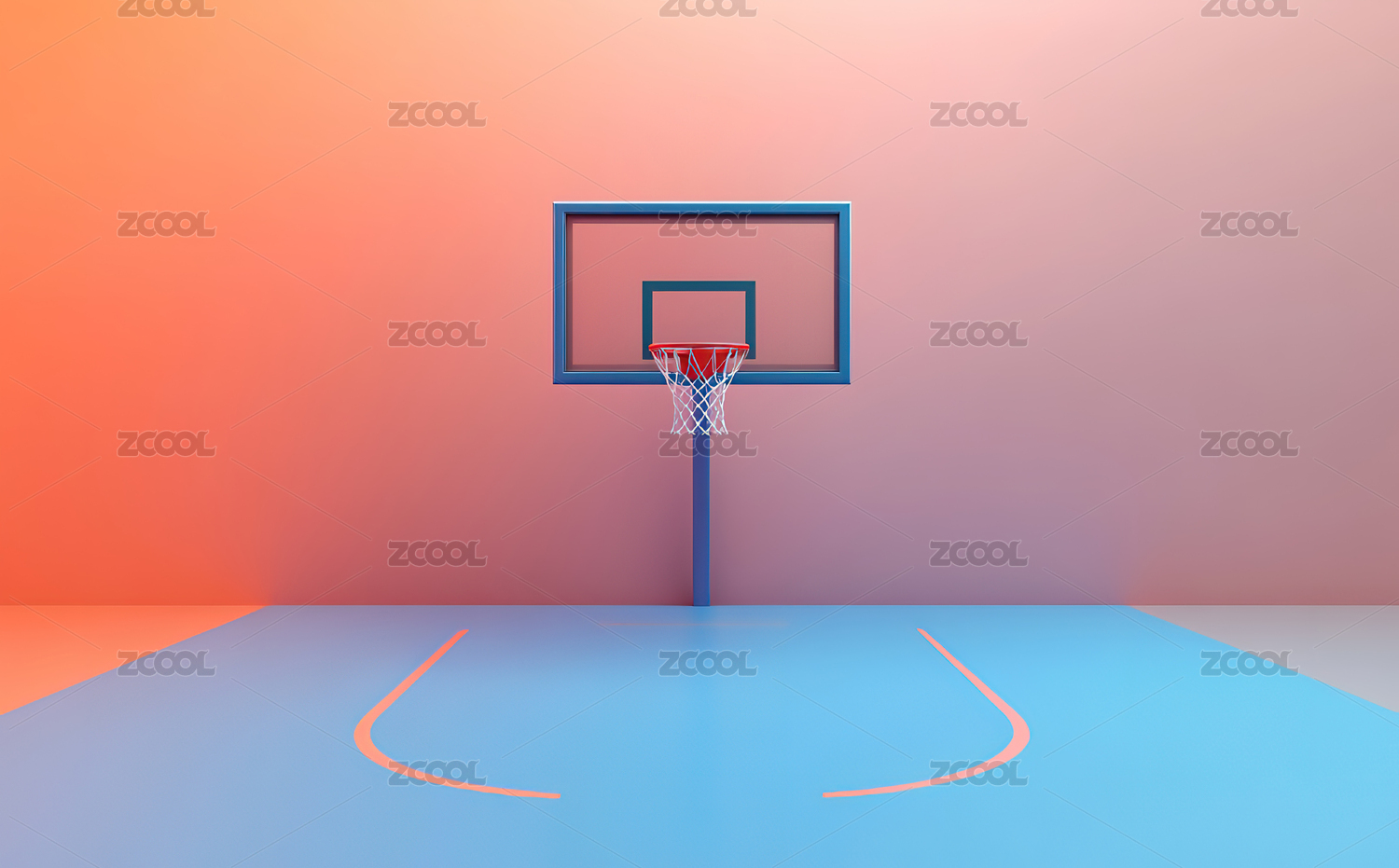 3D渲染的篮球架和篮球场