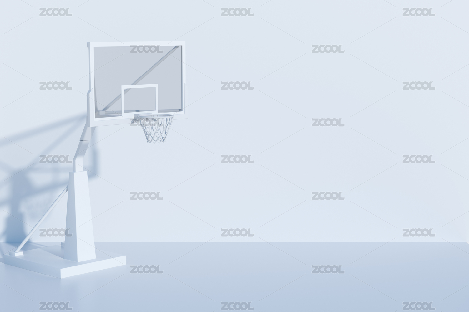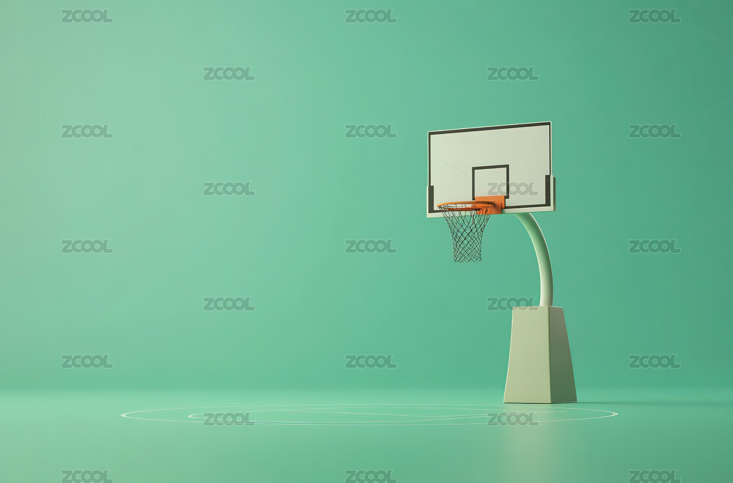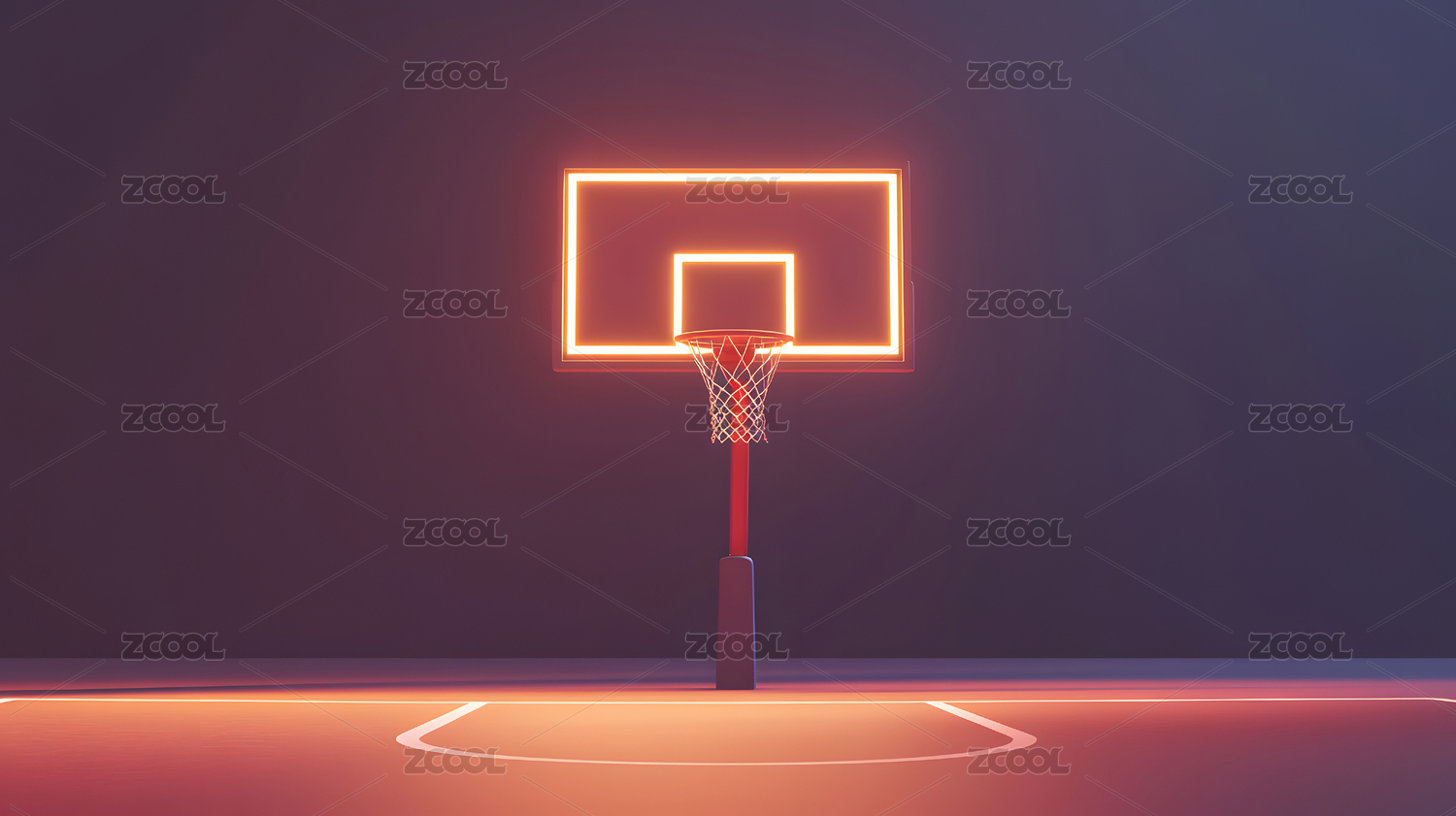 3D渲染的篮球架和篮球场