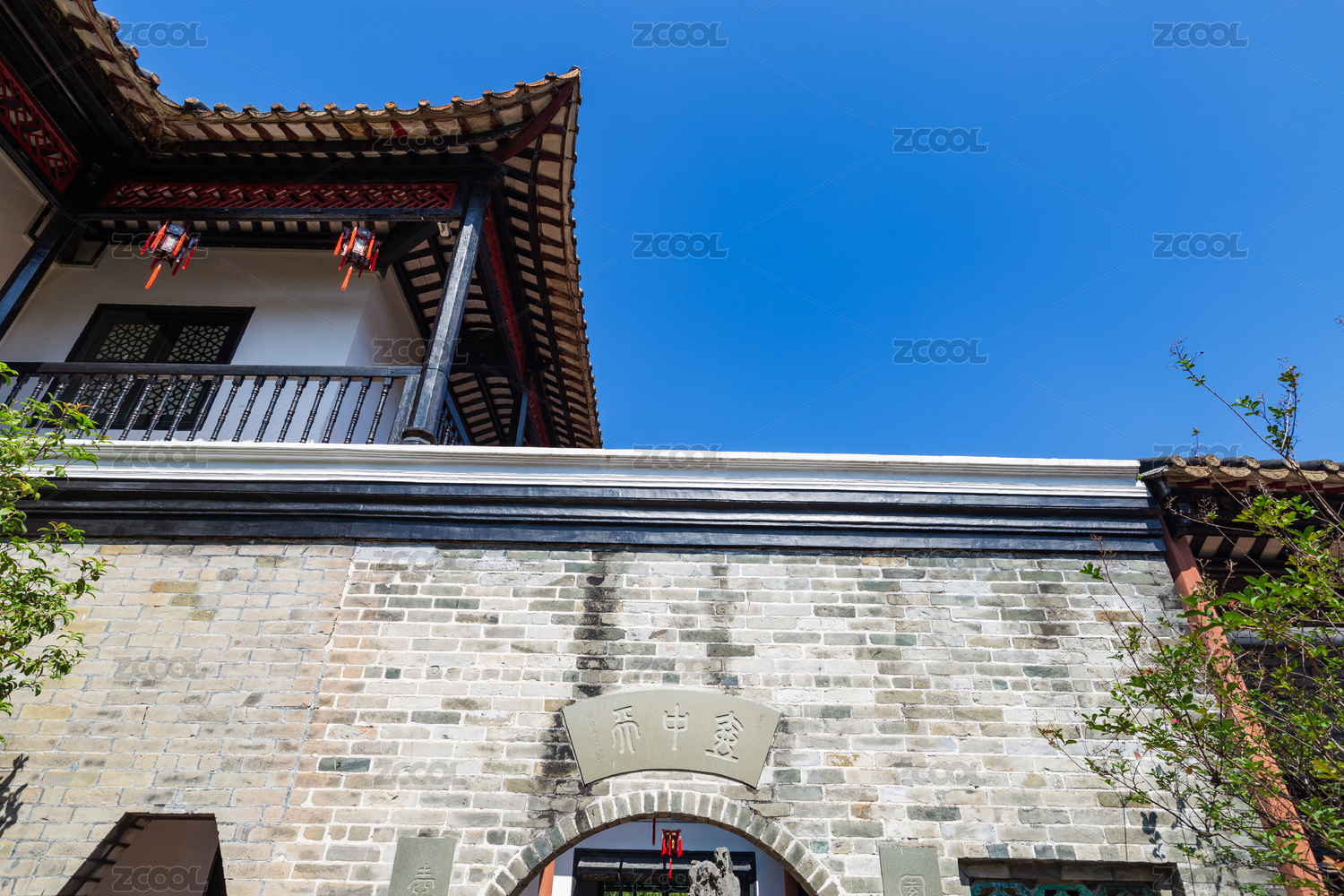 中国传统建筑风格灰砖瓦墙仿古建筑装饰
