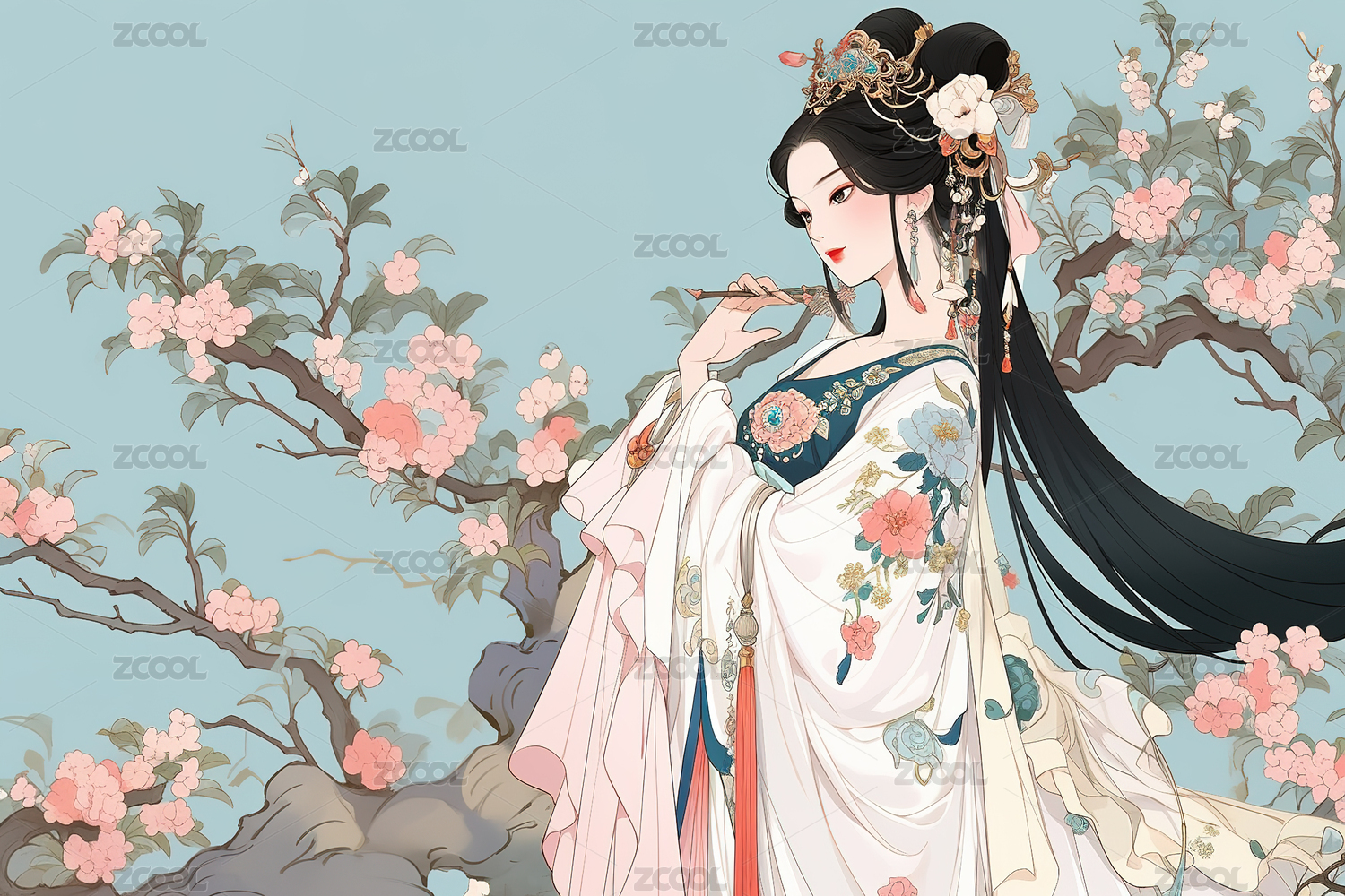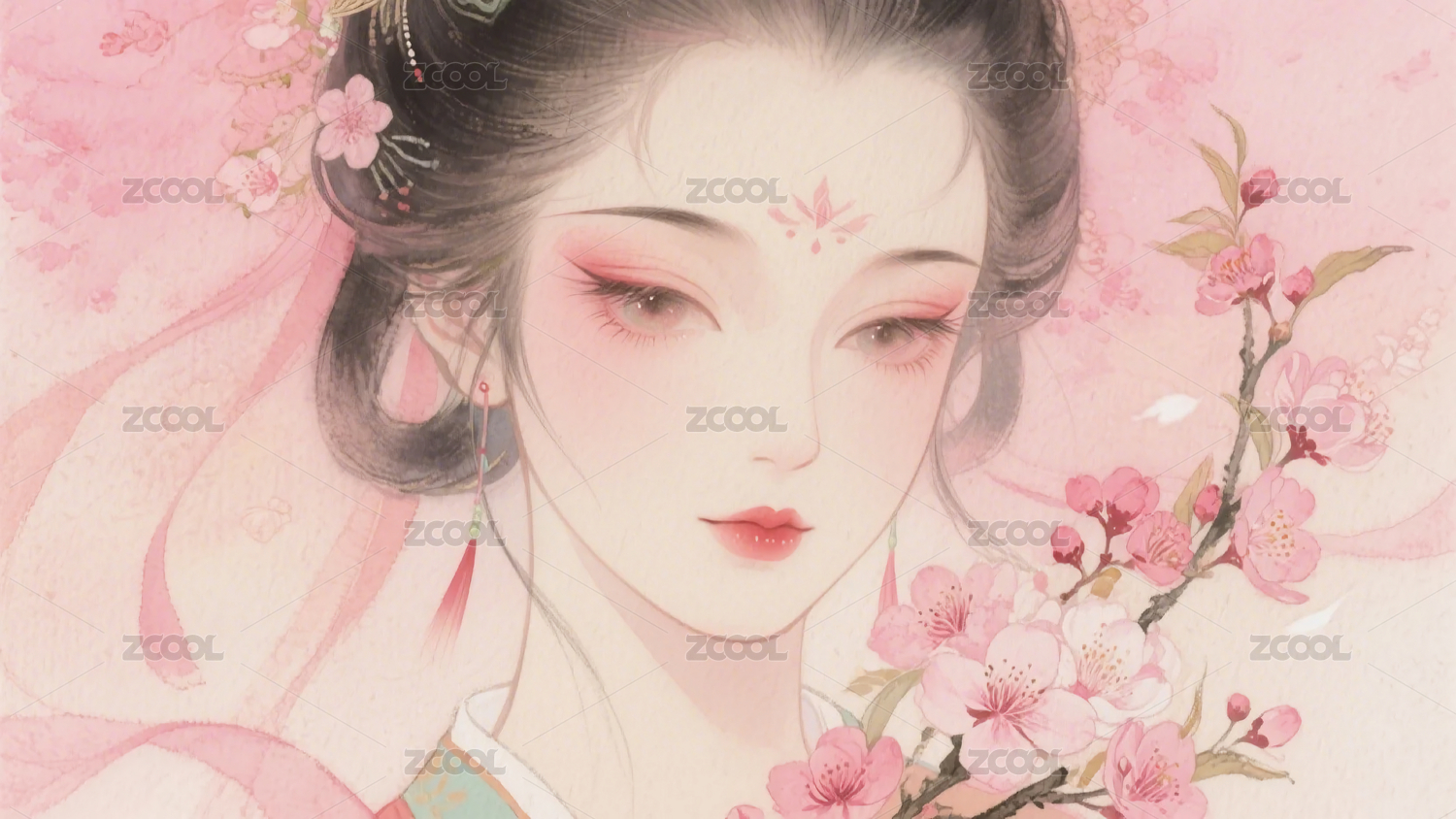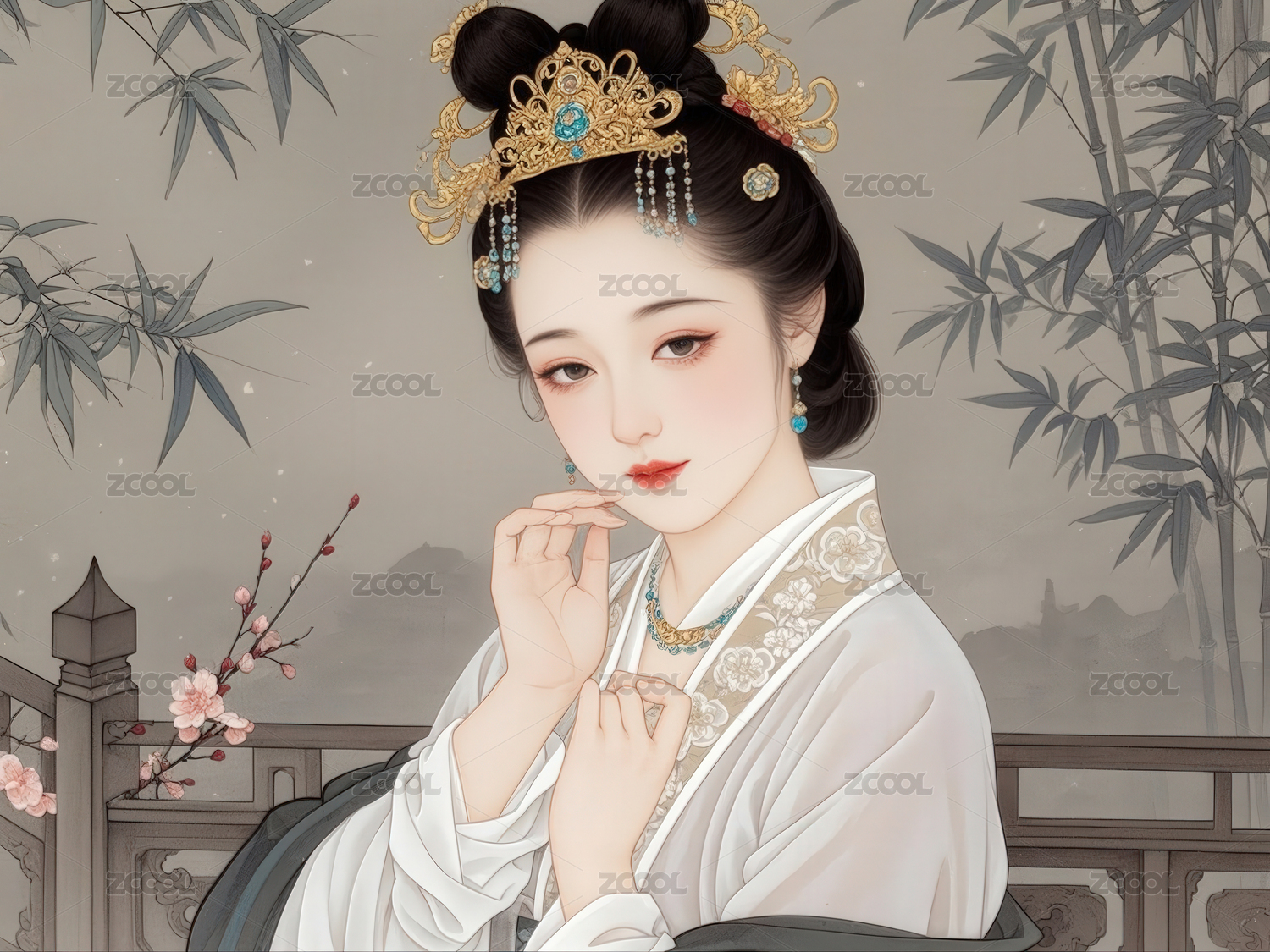 工笔画,公主,古典美女,古人,古装美女,国风,国画,美女,美人,美少女