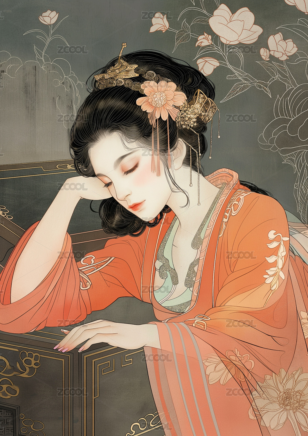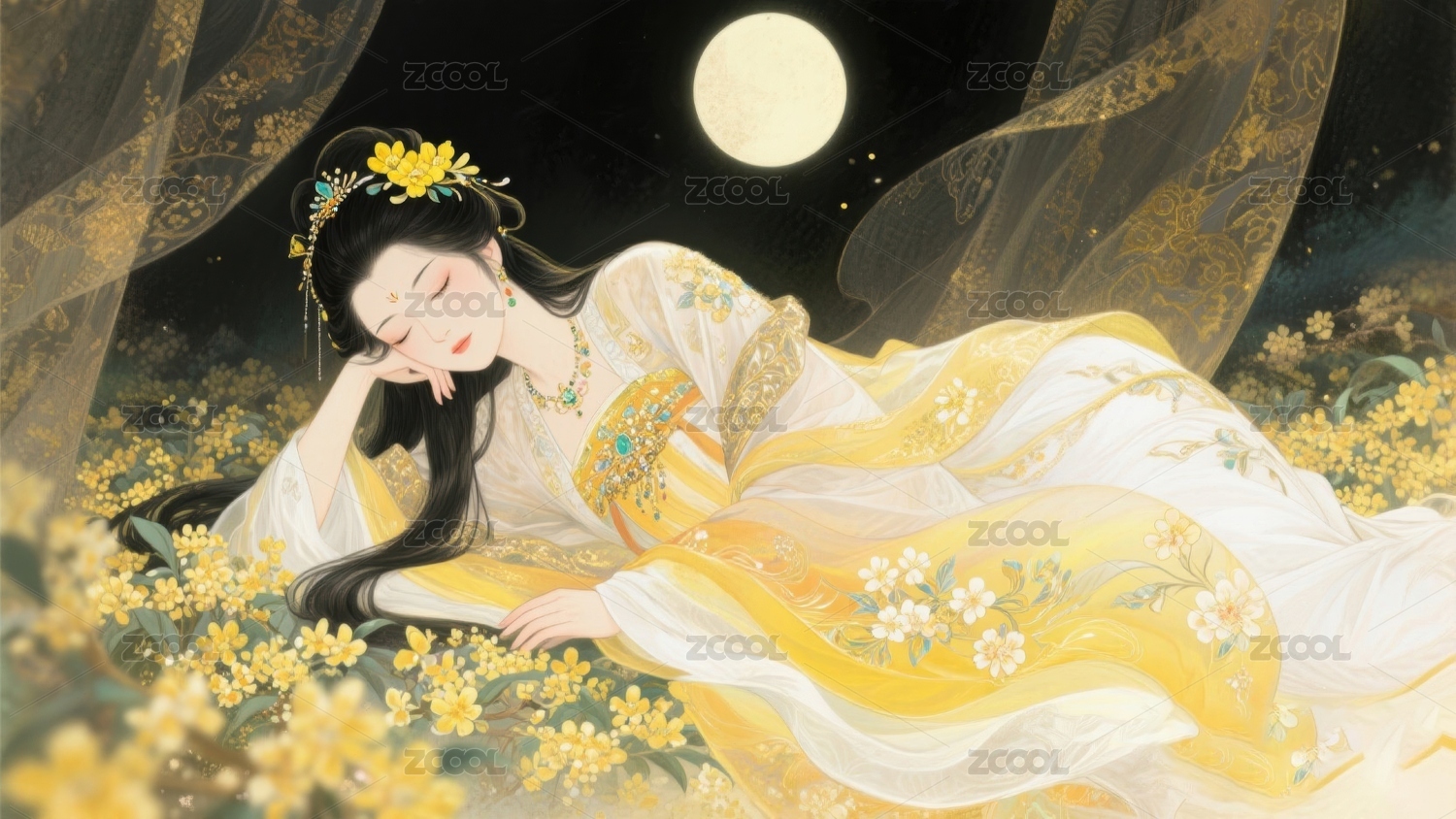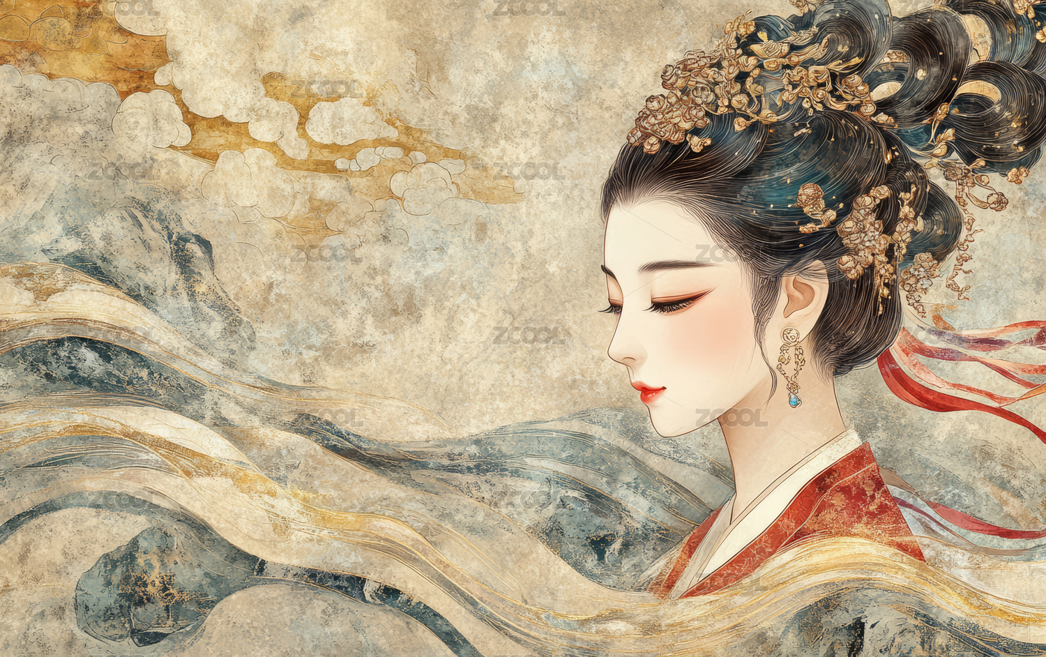 工笔画,公主,古典美女,古人,古装美女,国风,国画,美女,美人,美少女