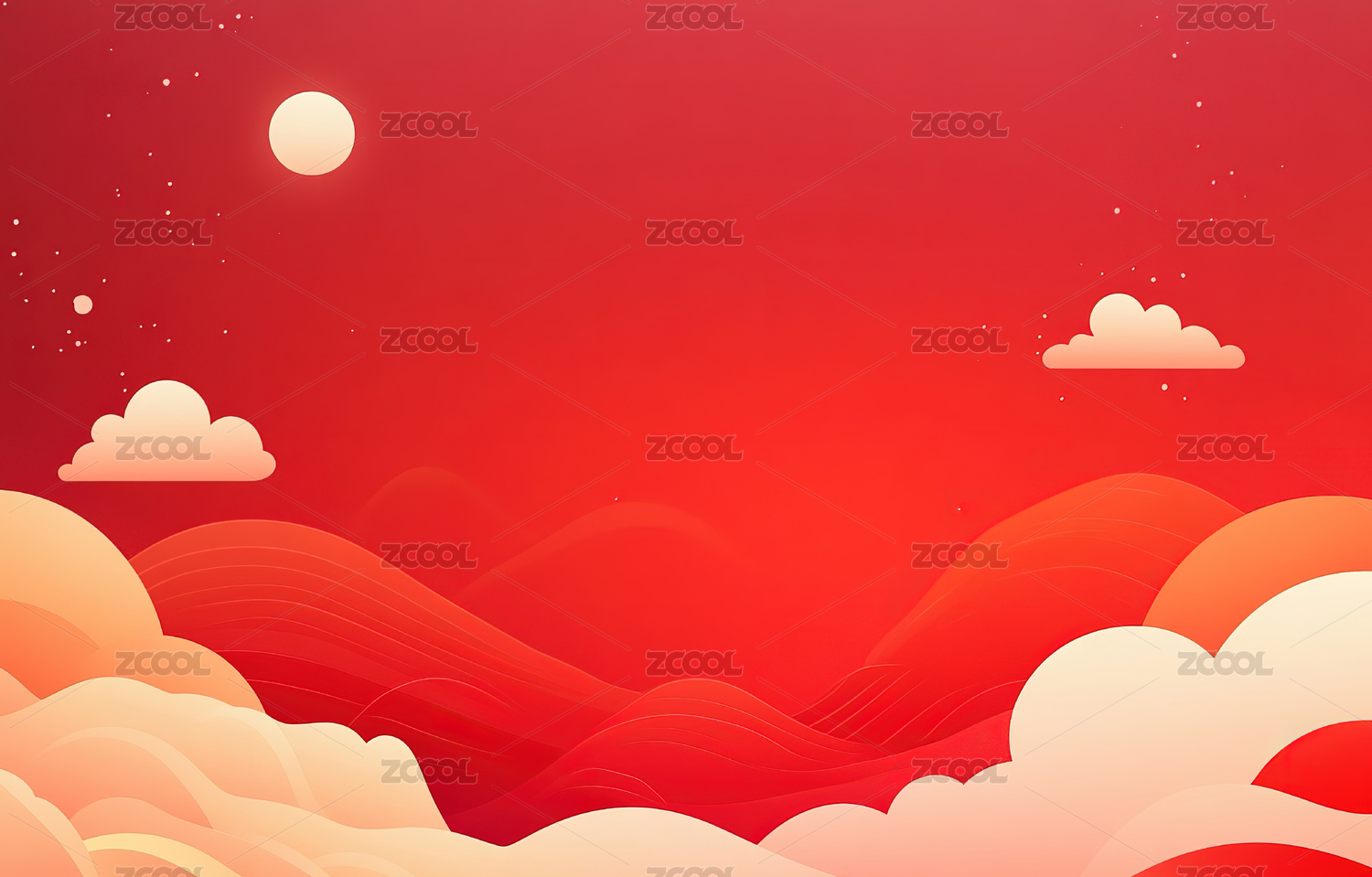 中秋节抽象插画,新国潮明月山水矢量底纹