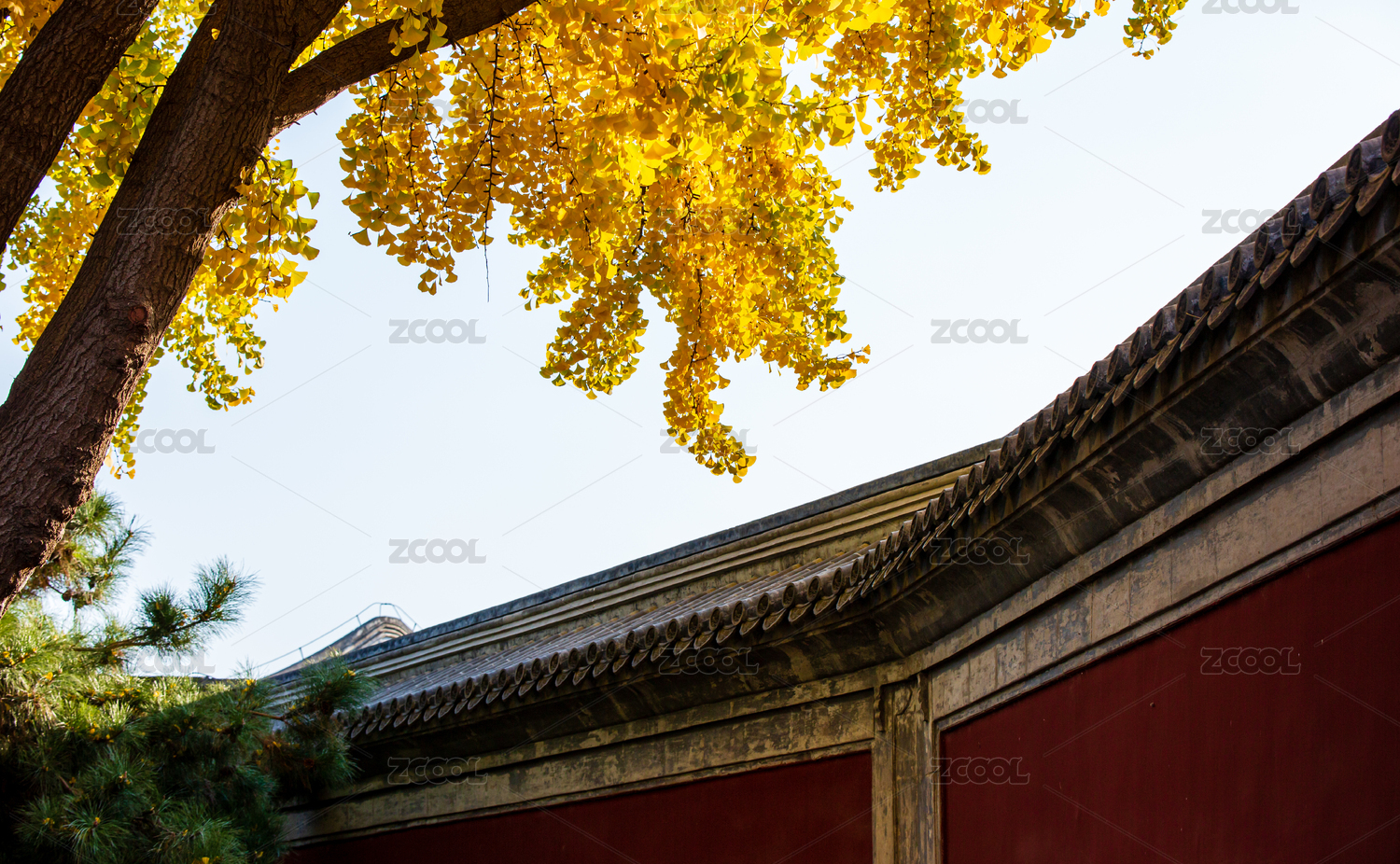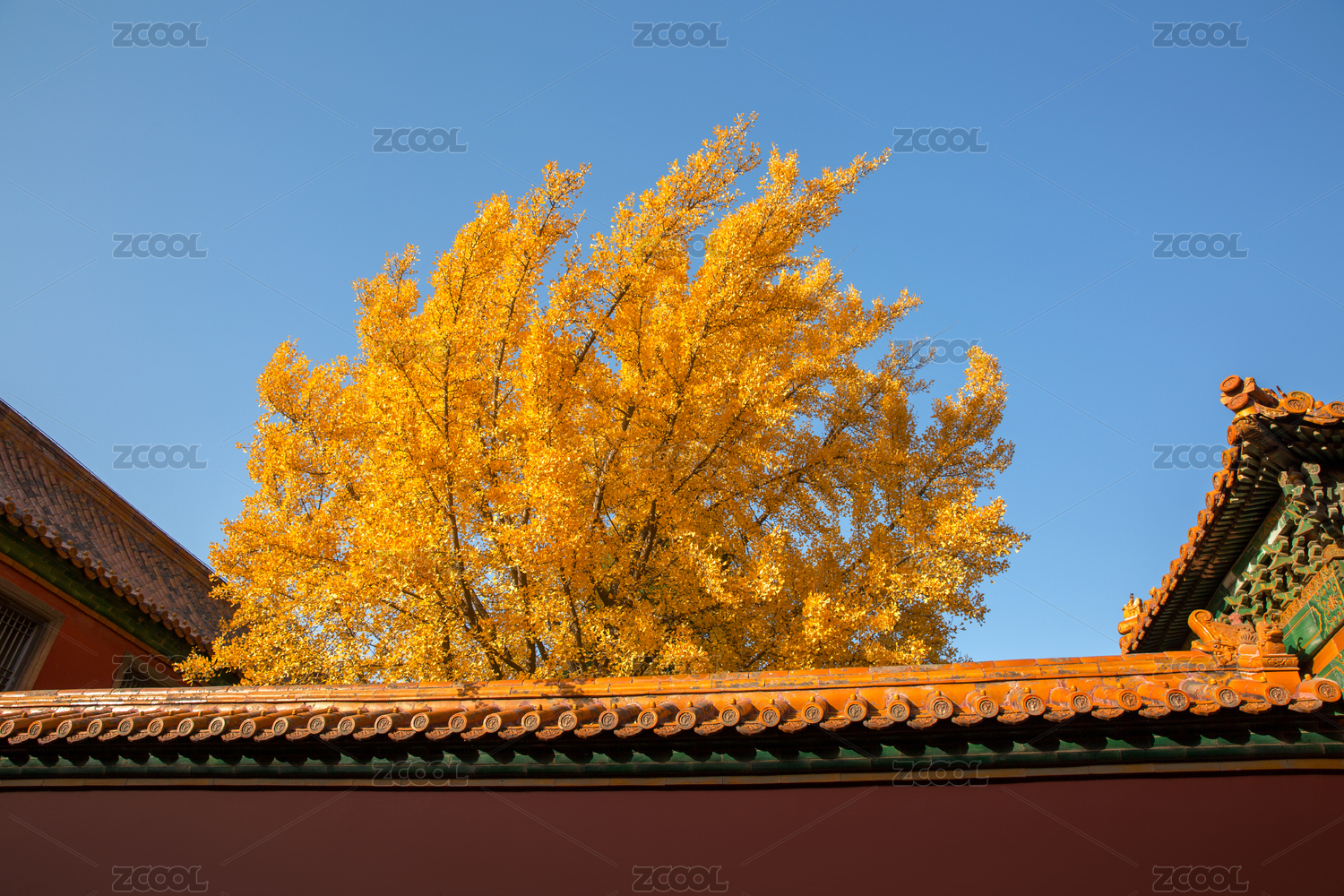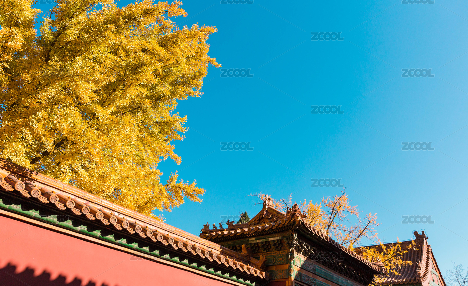 故宫建筑银杏树秋景