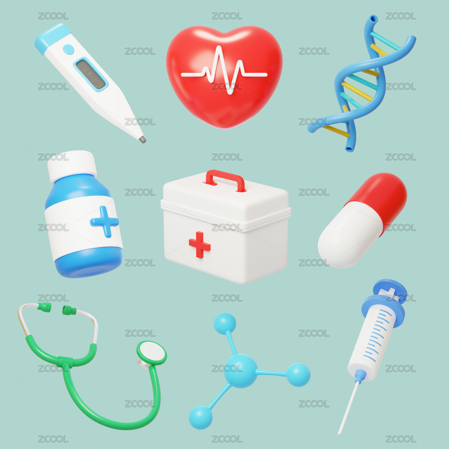 医疗,打针,针管,药丸,药,创可贴,听诊器,记录本,药片,急救包