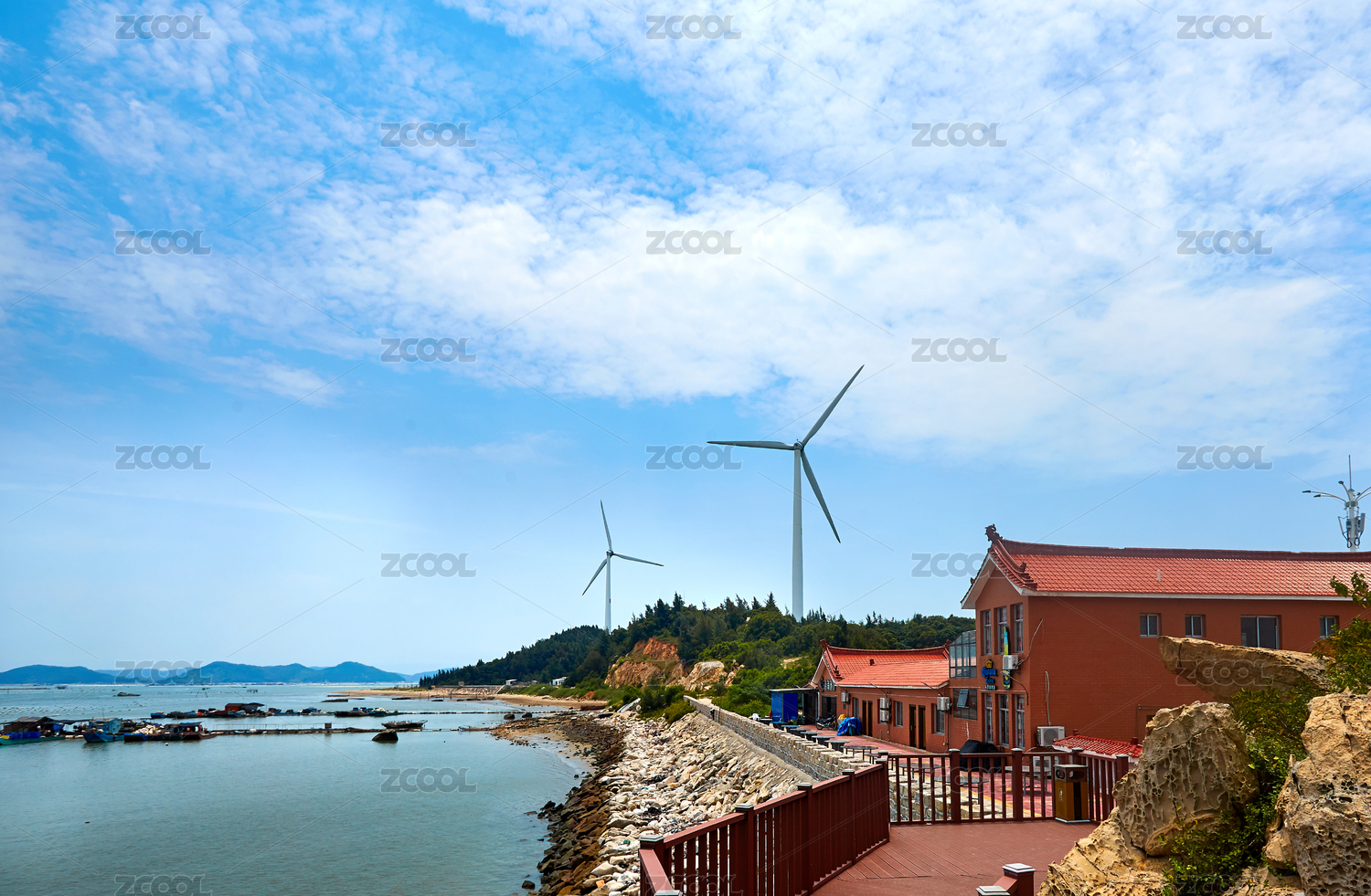 海岸,航拍,风力发电,低碳,新能源,海草房,公路,海岸风景,中国,山东