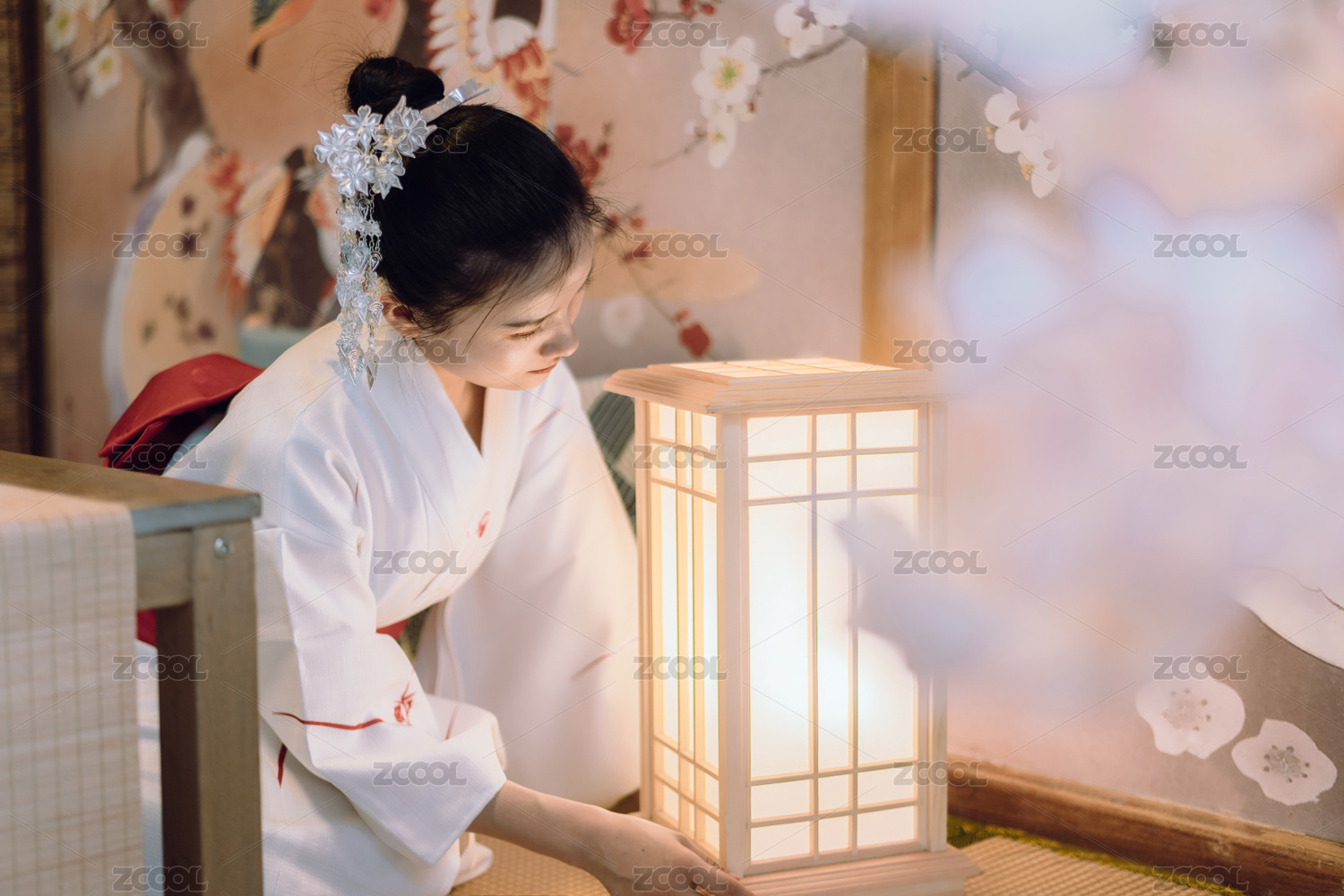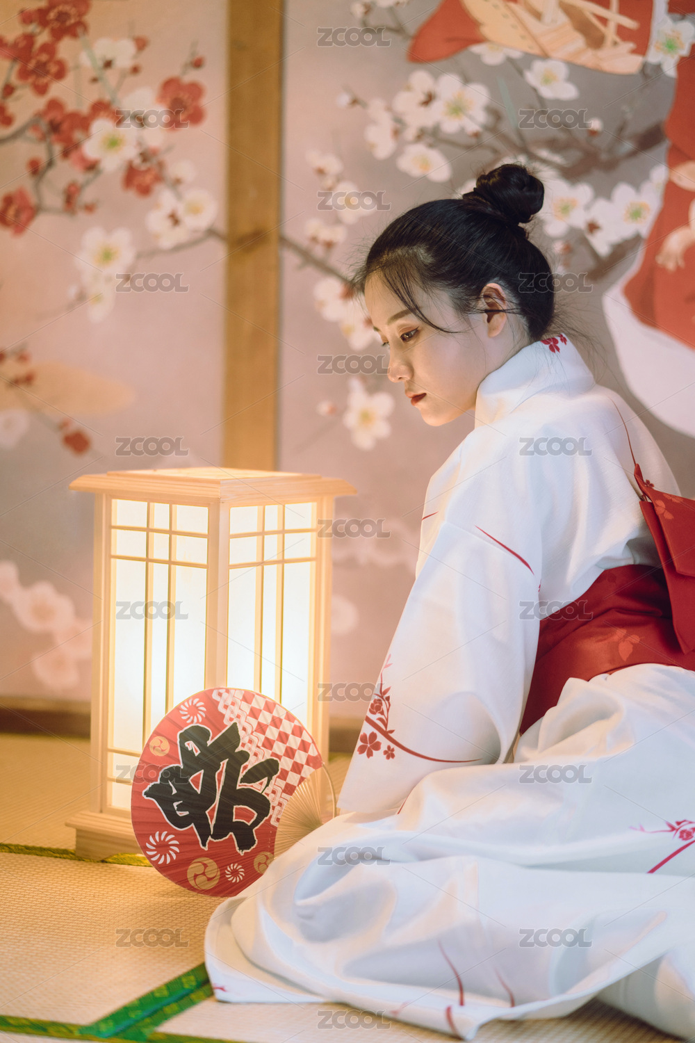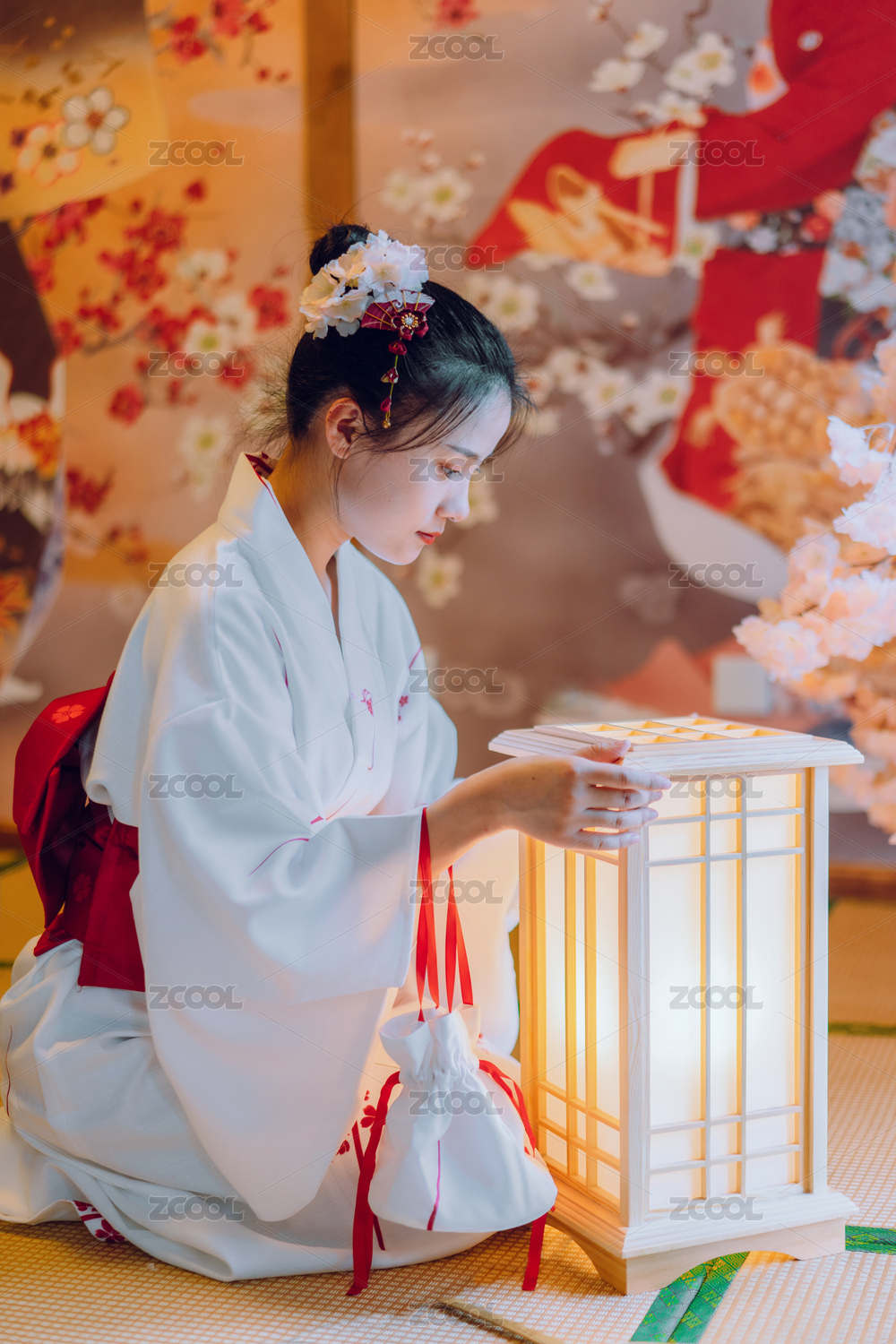 和服少女与灯笼