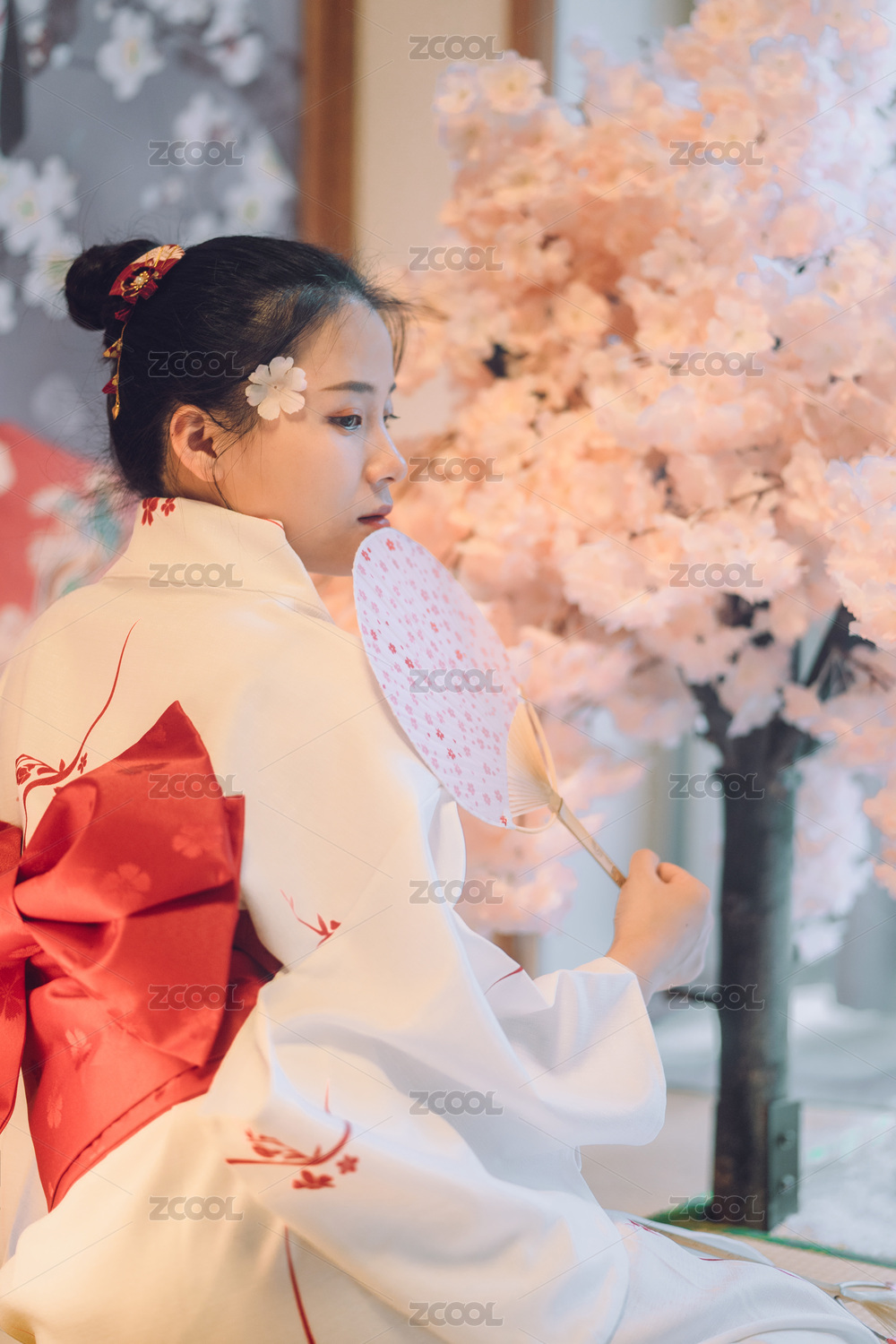 和服少女与樱花