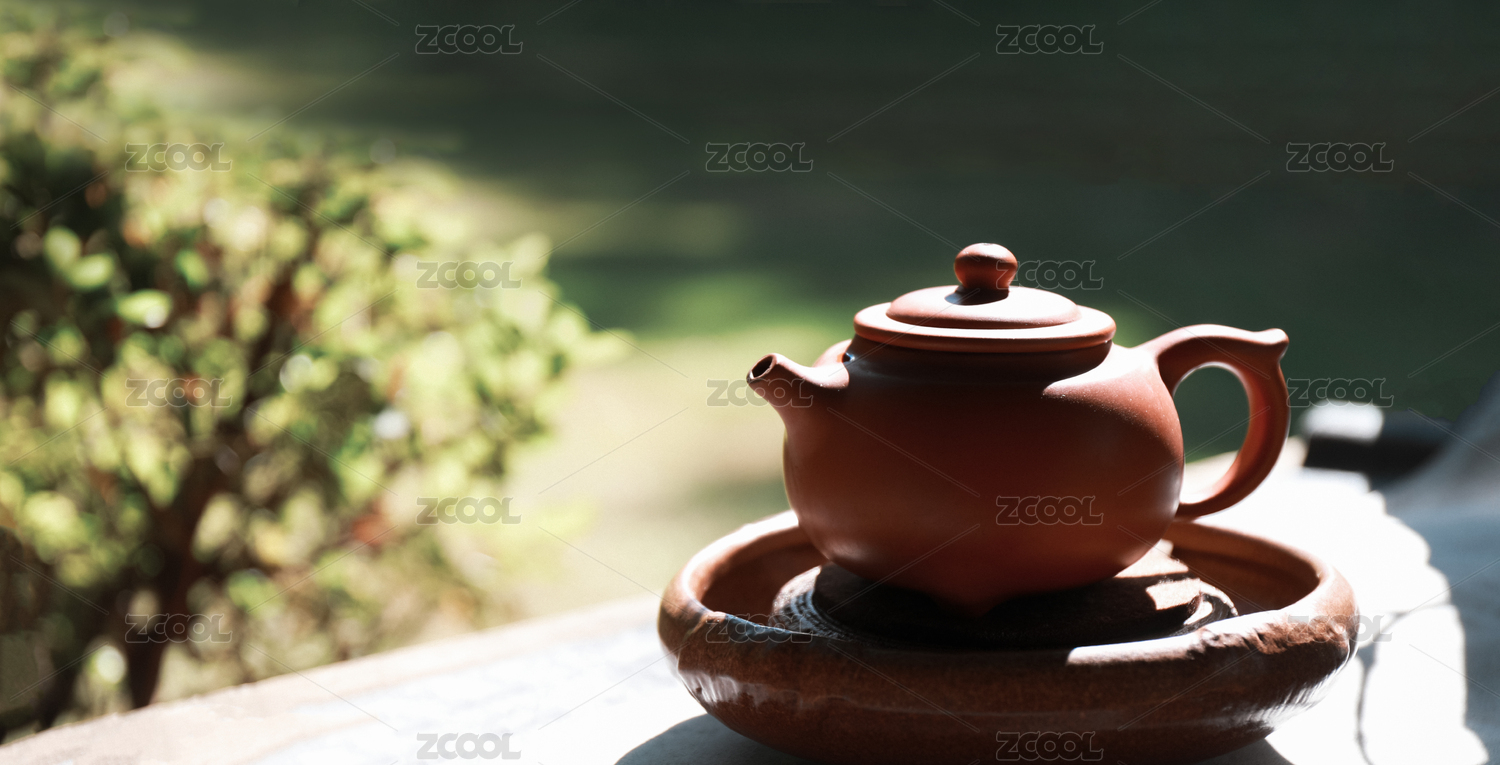 简约陶壶与茶具的阳光室内展示