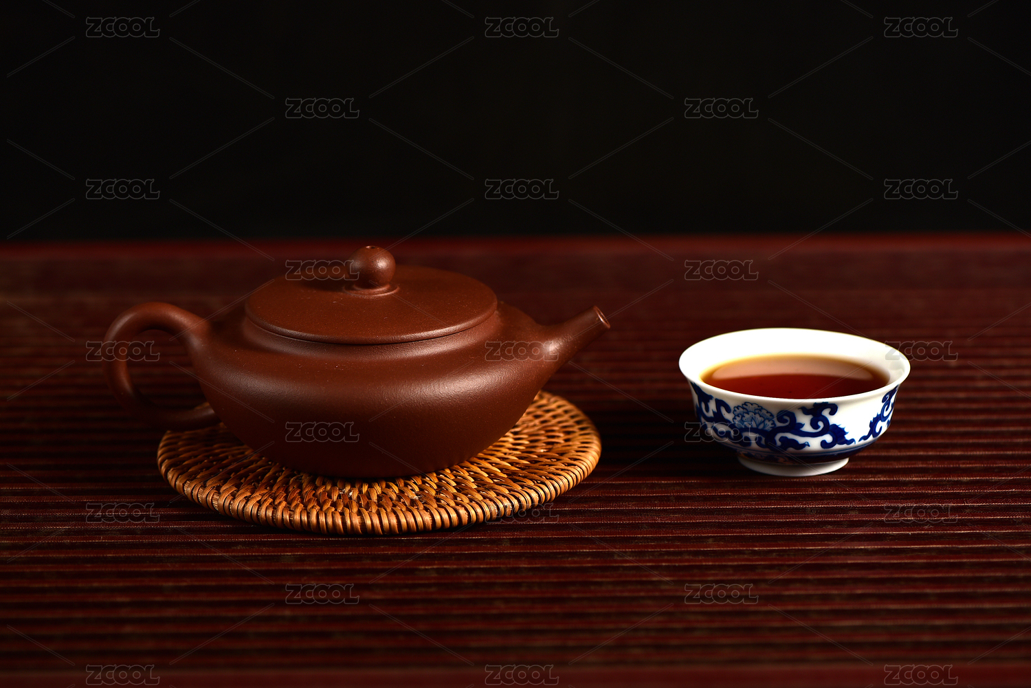 茶具在竹席上的意境之美