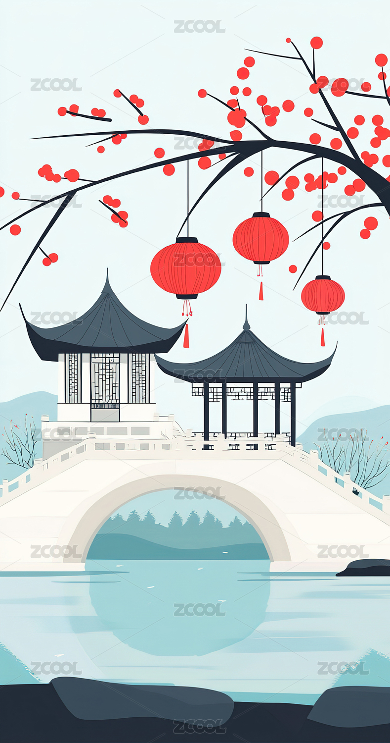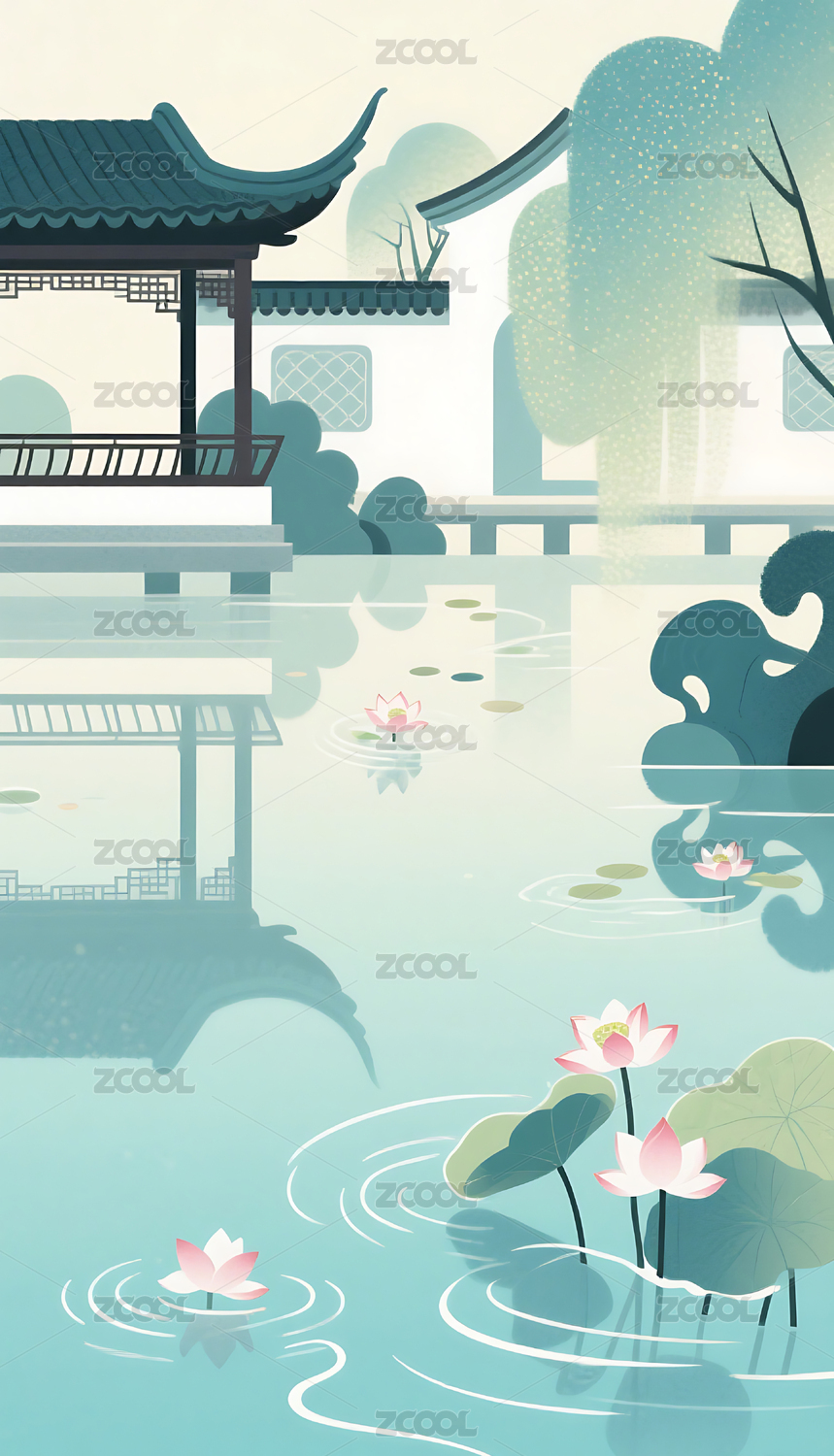 中式苏式园林插画背景