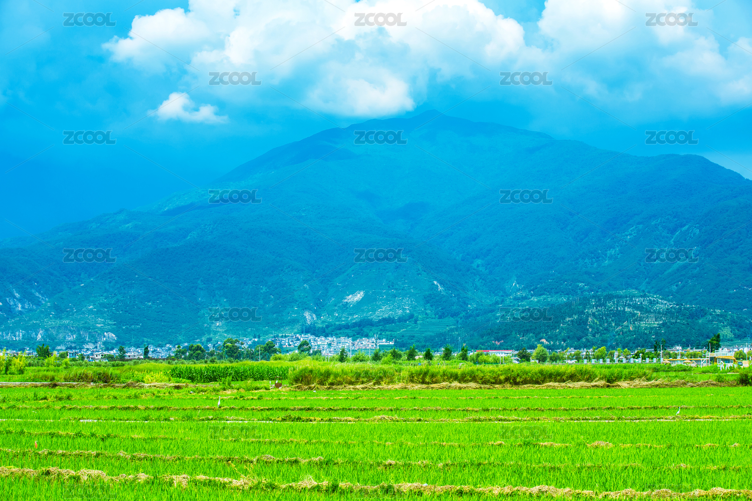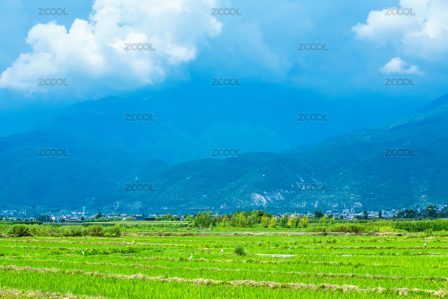 中国云南省大理市喜洲古镇乡间水稻田园风光