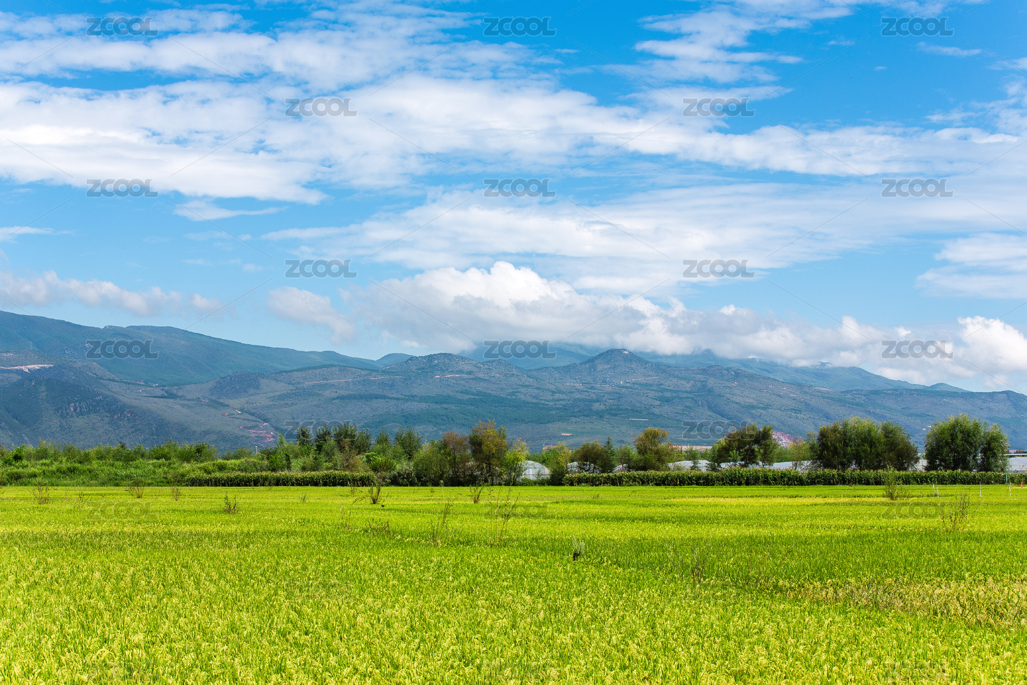 中国云南省大理市喜洲镇乡间水稻田园风光