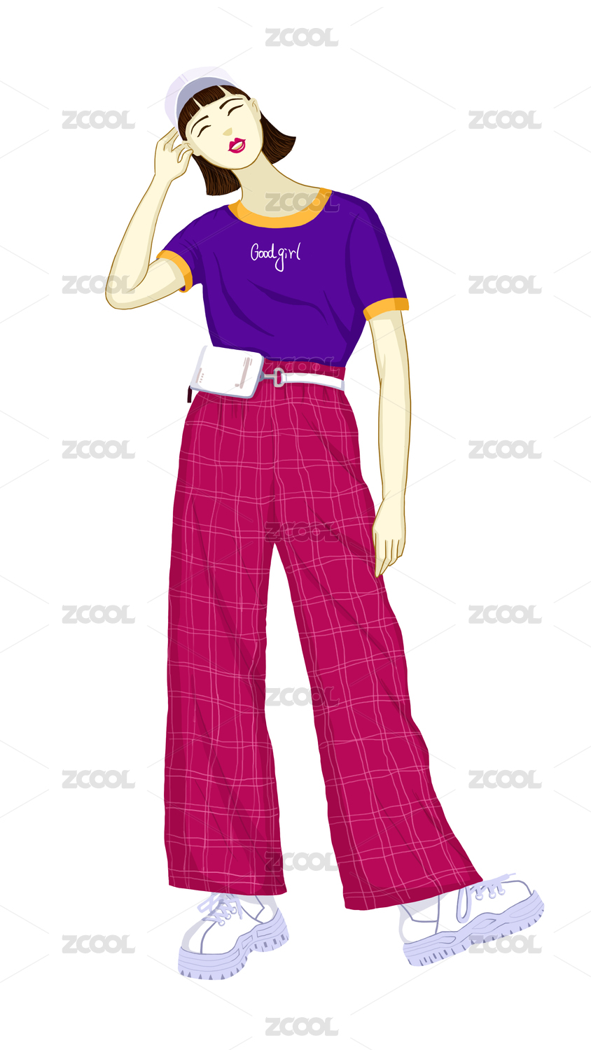 潮流人物女生站立姿势插画