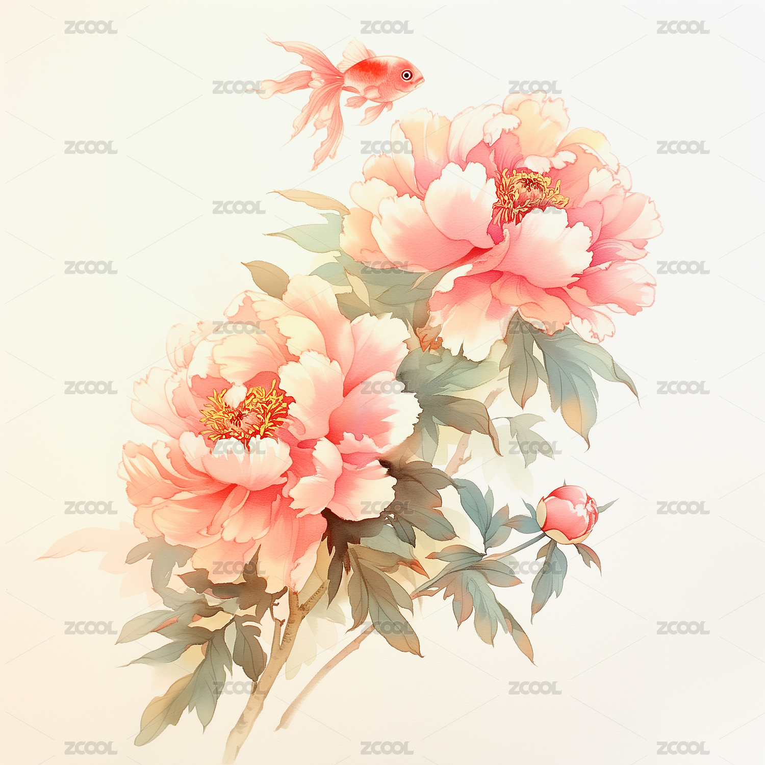 中国风牡丹古典国潮风唯美花瓣国画插画