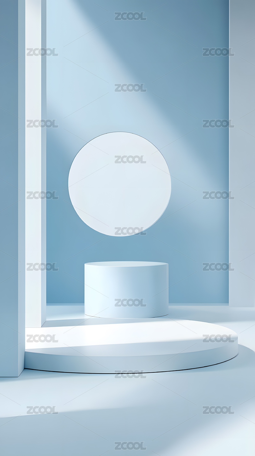 温柔色调的蓝色展示台展台