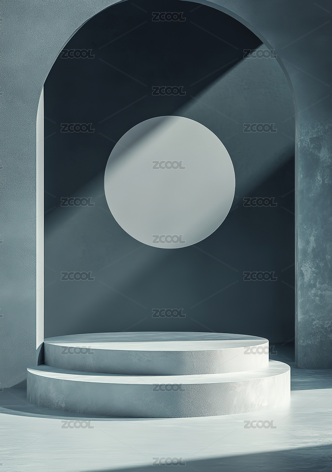 3D蓝色小清新拱门圆形电商产品展台